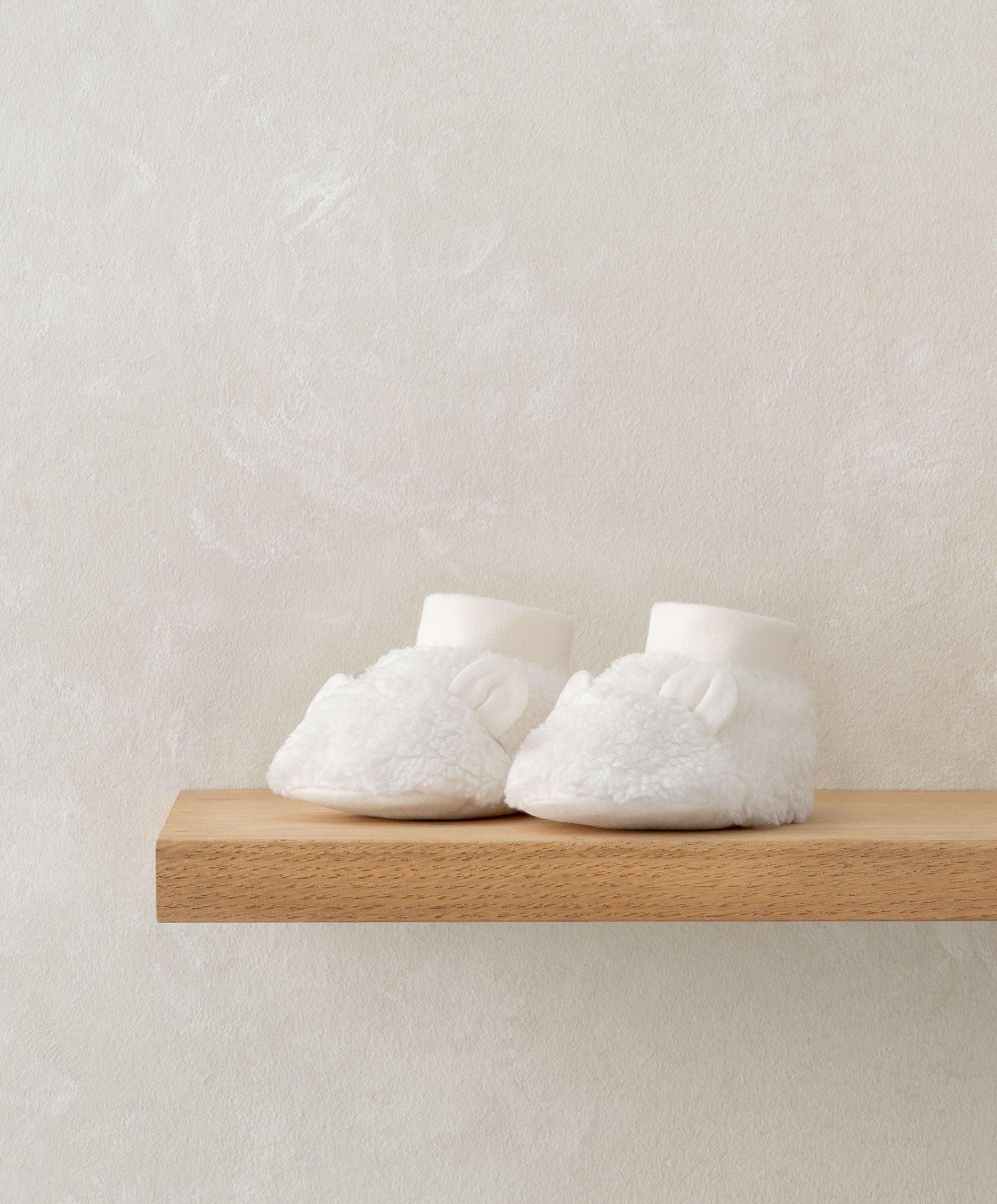 Keep their little toes warm with these soft Borg booties with 3D Ears and jersey cuff.