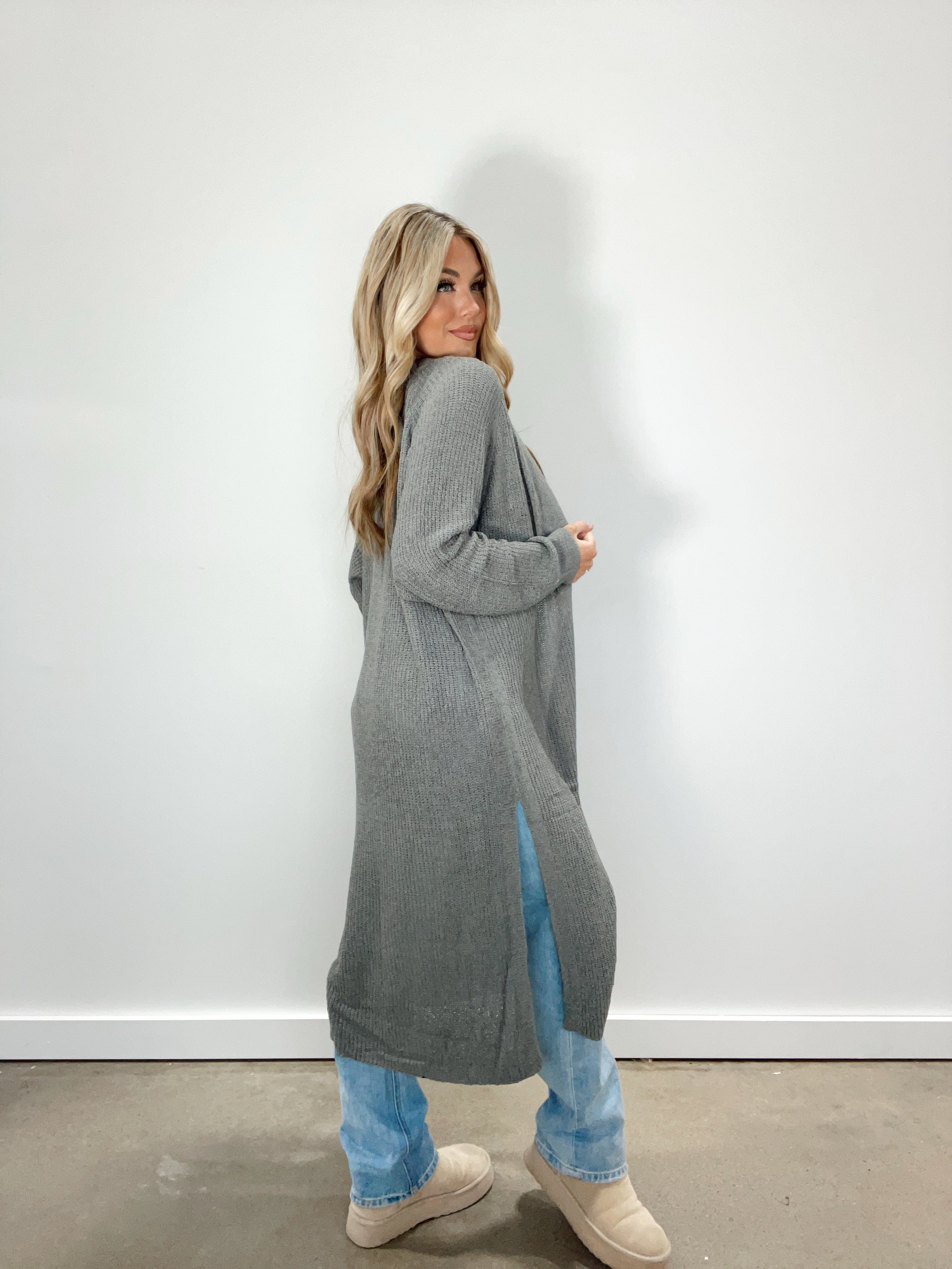 Indulge in luxury and comfort with our Cabin Fever Knit Cardigan. Crafted from soft and stretchy knit fabric, this long and cozy cardigan features side slit details for an elevated style. Perfect for lounging, coffee dates, or shopping, it's an essential addition to your wardrobe. Stay warm and trendy with this casual yet elevated piece.