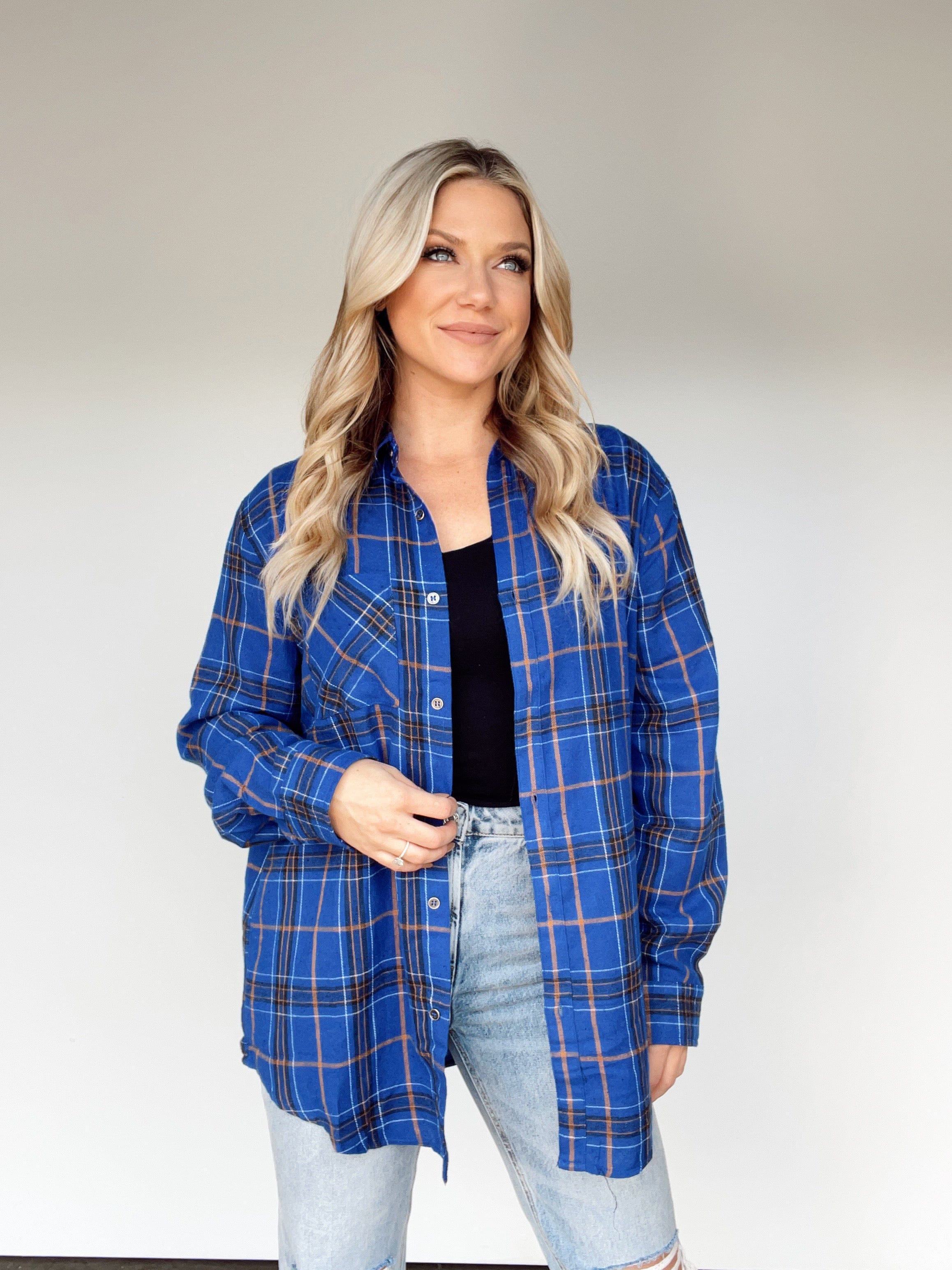 Our Campfire Cutie Flannel is designed with comfort and style in mind. Featuring a collared neckline, button closures, pocket details, and a rounded hem, this lightweight flannel is perfect for cooler fall days. Soft to the touch and thoughtfully elevated with a classic plaid pattern, this timeless flannel is ideal for campfire nights, errands, and trendy shopping. Versatile and timeless, the Campfire Cutie Flannel is your ultimate fall staple.