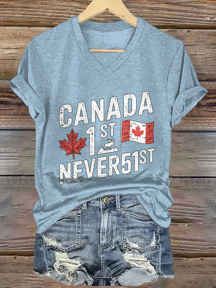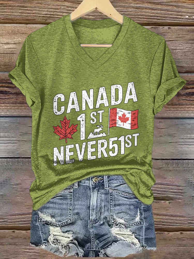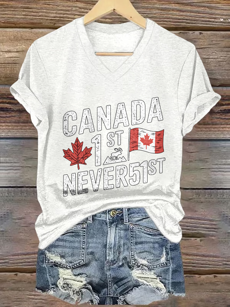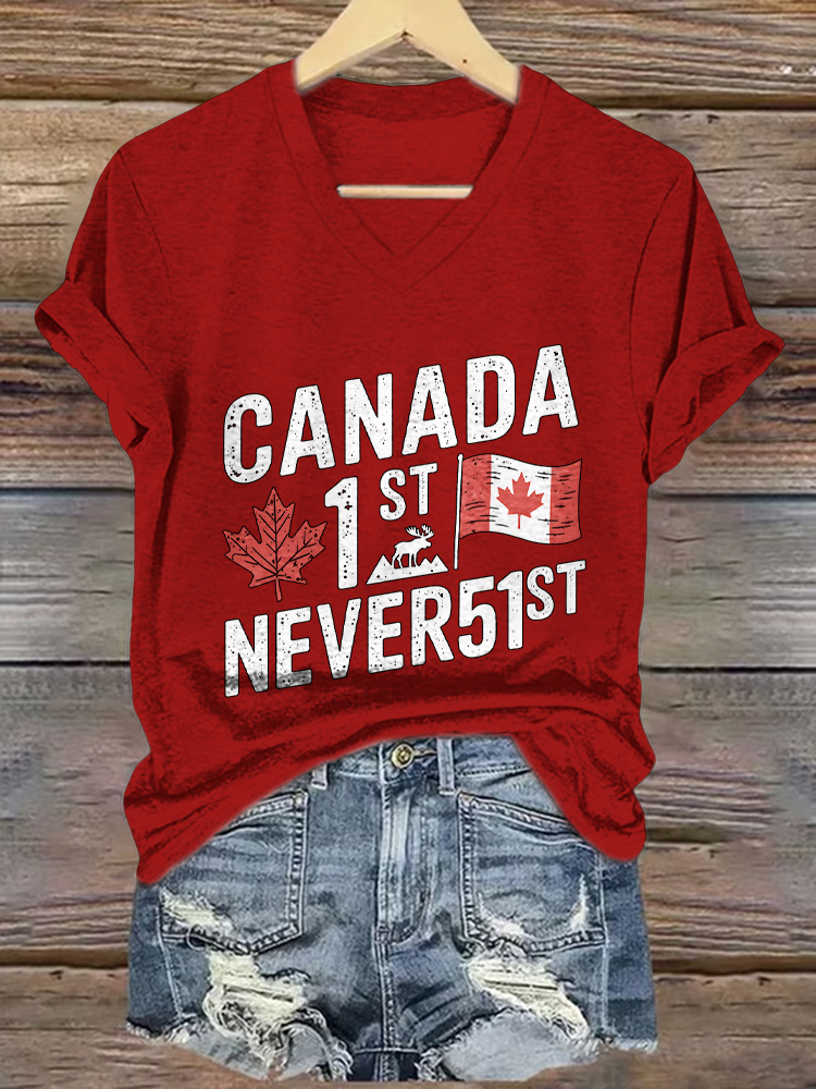 Canada 1 St Never 51 St Printed V-Neck Short-Sleeved T-Shirt