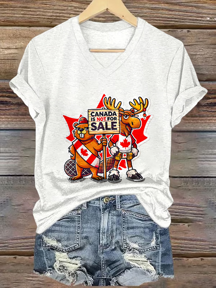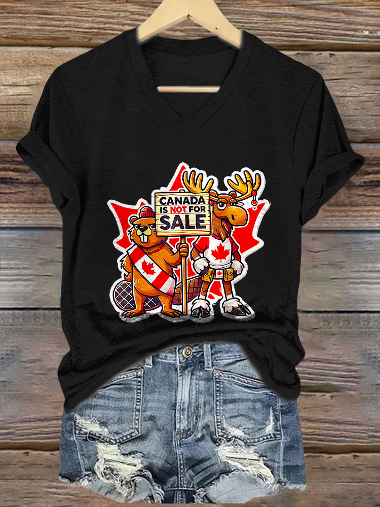Canada Is Not For Sale Printed V-Neck Short-Sleeved T-Shirt