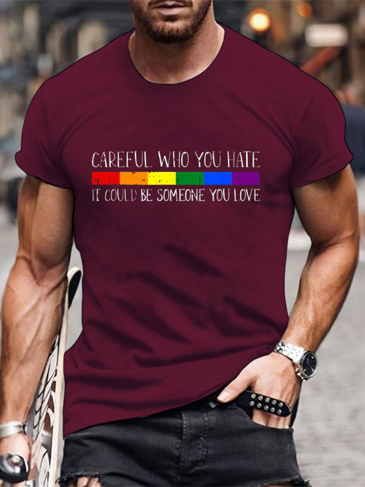 Careful Who You Hate Gay Pride LGBT Q Rainbow Flag Ally T Shirt
