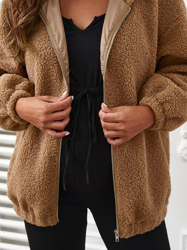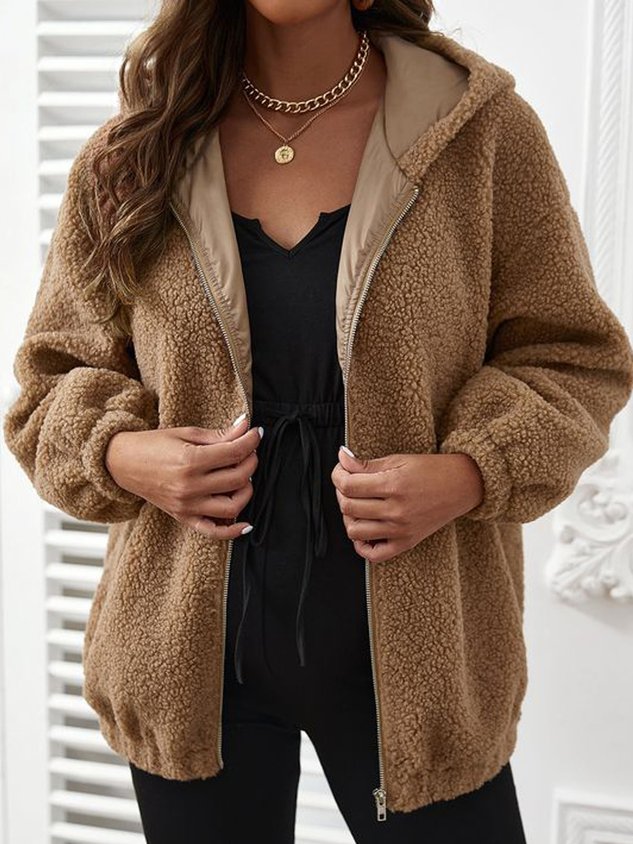 Plain Hoodie Casual Teddy Jacket