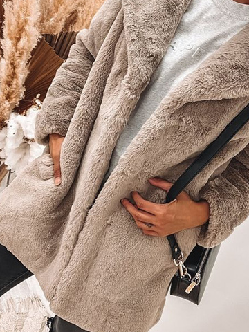 Casual Plain Shawl Collar Long sleeve Loose Teddy Jacket 176188