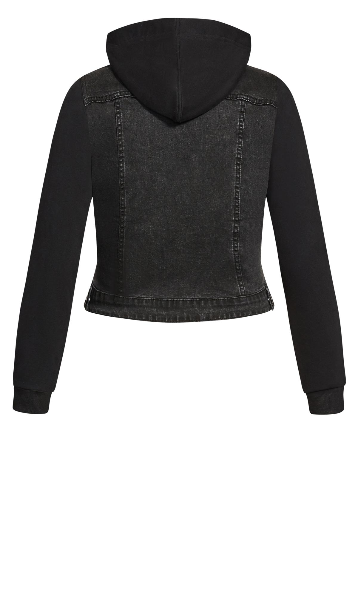 Introducing the City Chic Black Denim Mix Hooded Jacket—a fusion of style and versatility. This jacket combines the edginess of black denim with the comfort of a hooded design. Whether layered over dresses or paired with jeans, it's a trendy choice for urban-inspired looks, making a statement wherever you go.