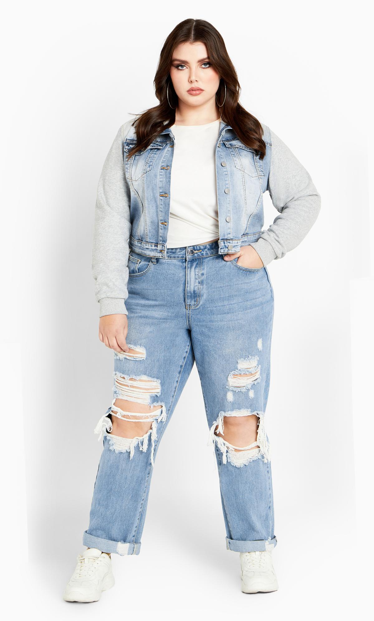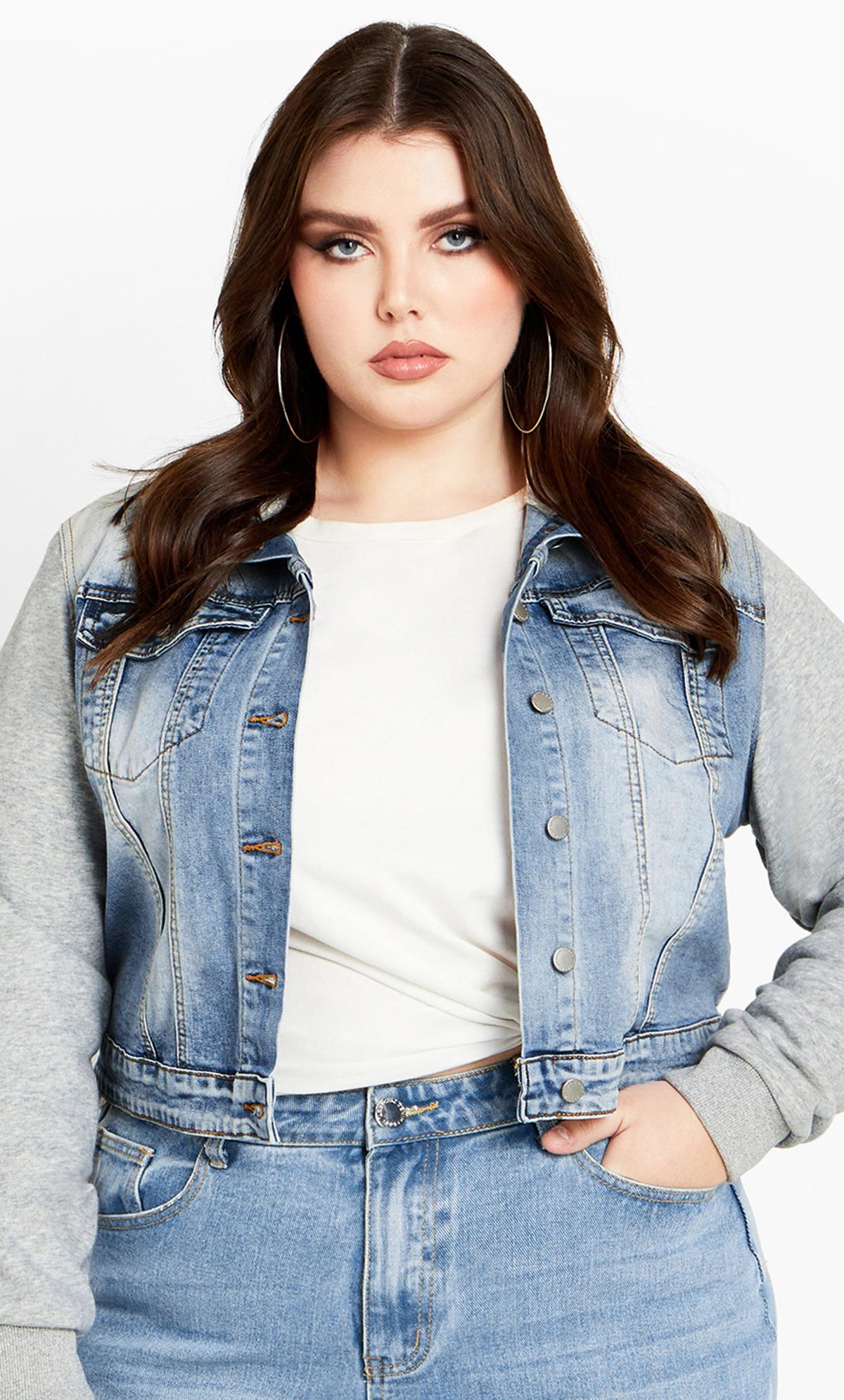 Elevate your denim game with the City Chic Blue & Grey Cropped Denim Jacket. The striking blue and grey hues blend seamlessly in this modern take on a classic. The cropped length adds a touch of contemporary flair, perfect for layering over dresses or tees. With its versatile design, this jacket effortlessly combines style and comfort, making it a must-have addition to your wardrobe for an edgy and fashionable look.
