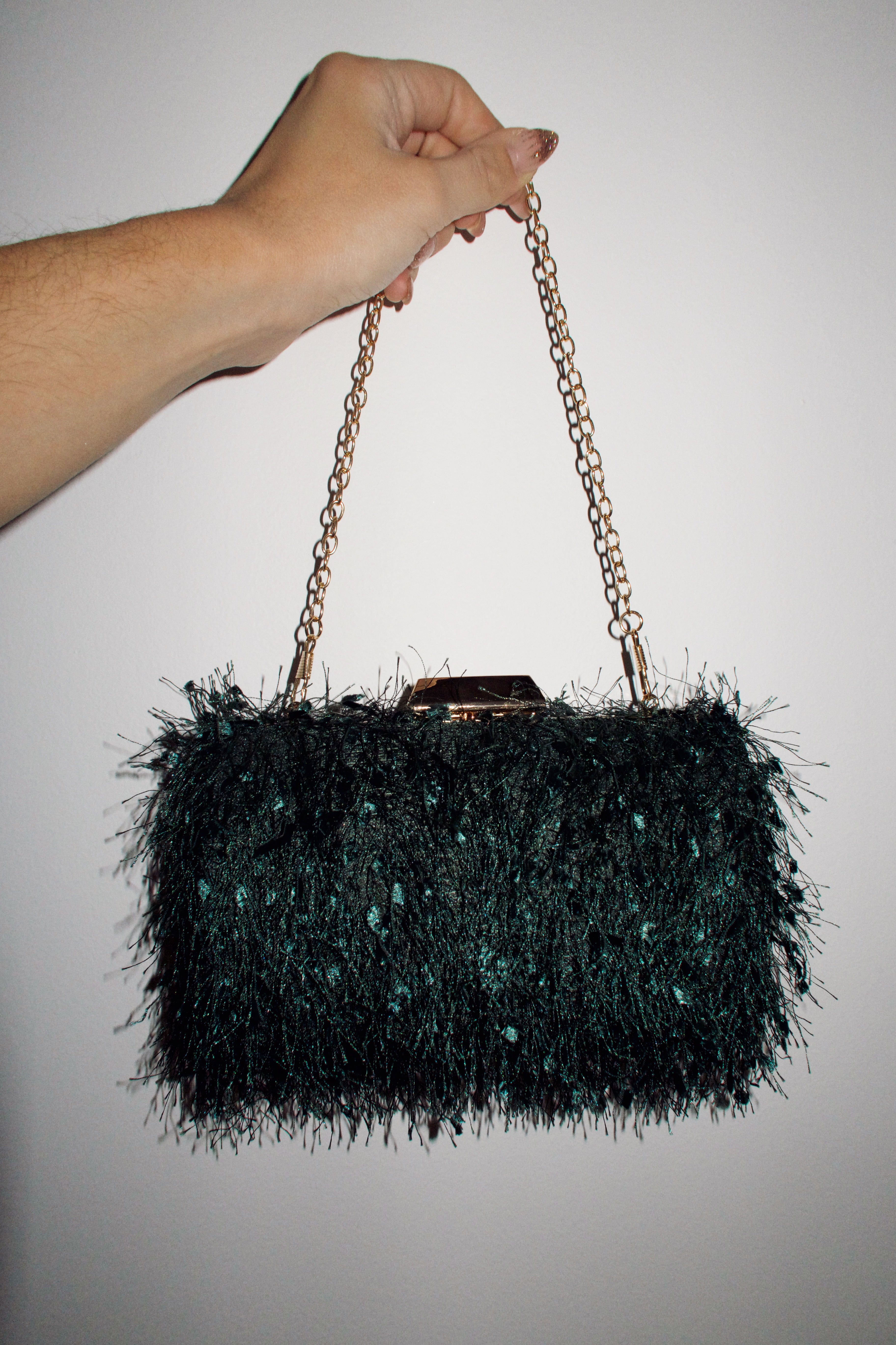 Inspire envy with our timeless Champagne Cascade Clutch. This luxurious accessory features fuzzy detailing and sleek gold accents, which make it the perfect formal companion. Compactly designed and made with elevated materials, it's certain to become a statement piece for any gala or glamorous event. Upscale and ready to accessorize, it also includes a gold chain strap.