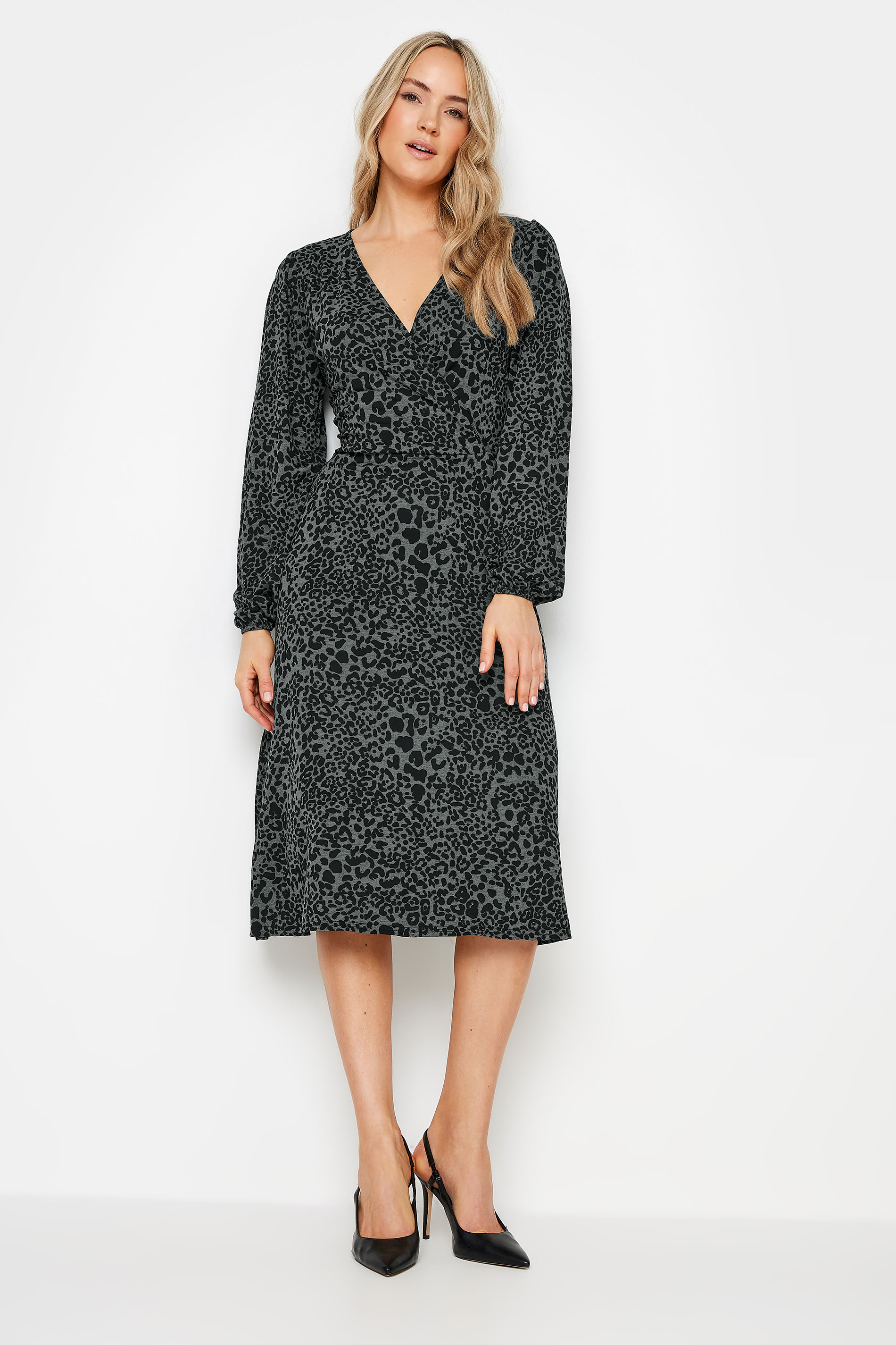 Wondering what to wear this weekend? Why not try this new-in midi dress. Made from a comfortable jersey fabric, it features an animal print with long balloon sleeves and a wrap front. Team with tights and boots for a look that is set to be your go-to this season.