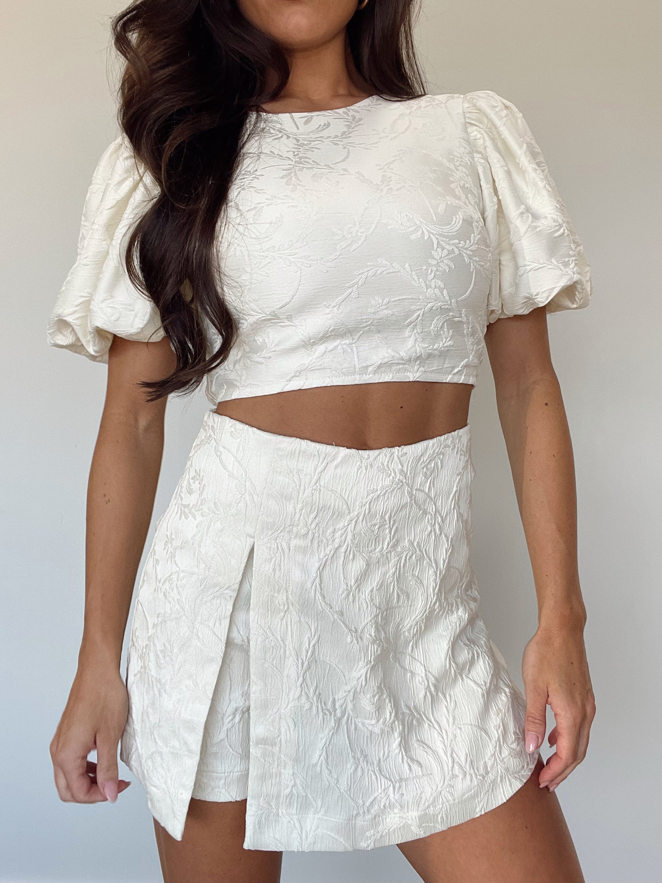 The Chardonnay Darling Skort boasts a subtle floral design and a zipper closure in the back for a streamlined, polished look. Its unique skort design provides both style and comfort, while its limited stretch offers a flattering fit. Elevate your wardrobe with this must-have piece.