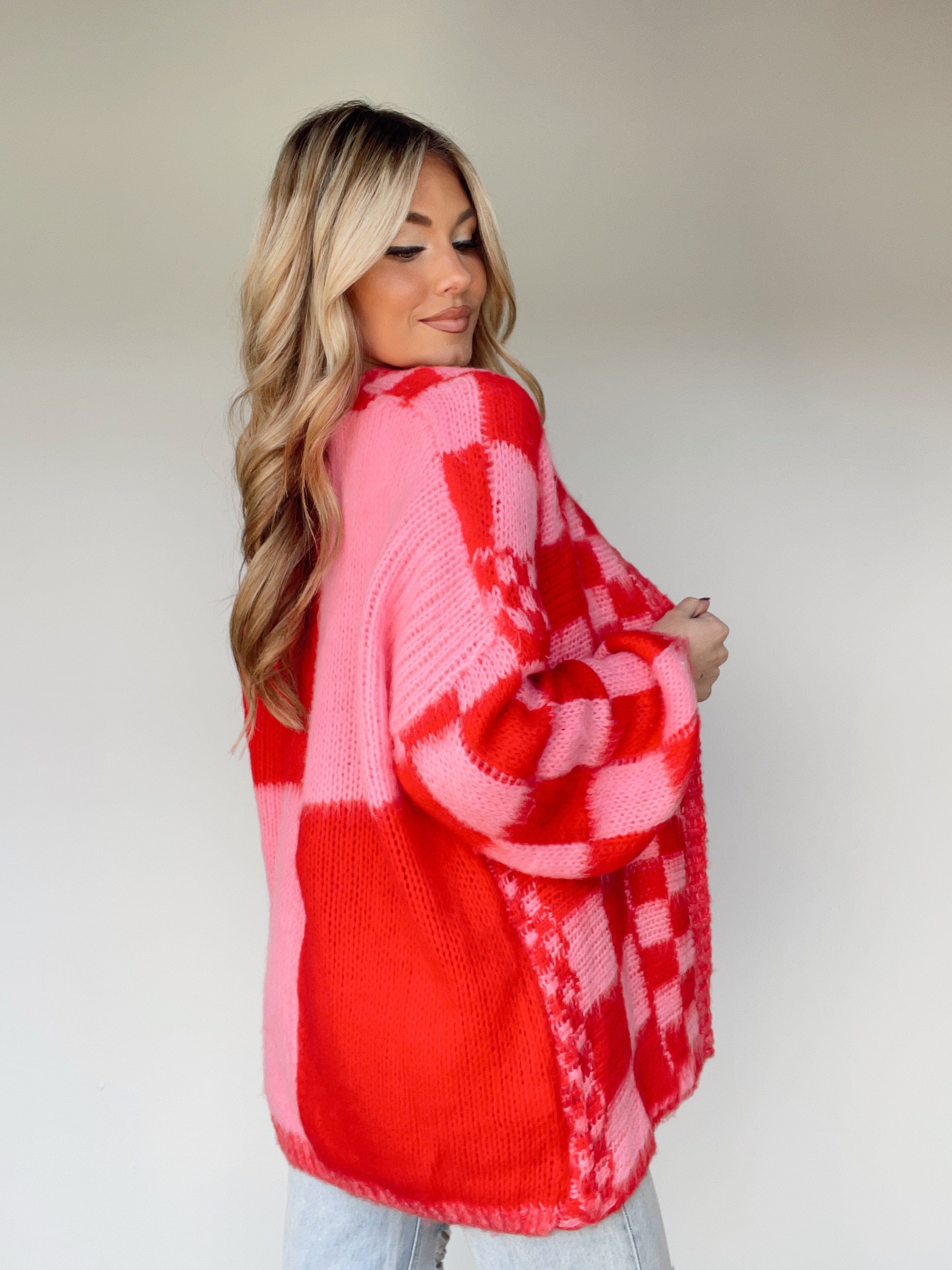 This charming Checking The List Cardigan checks all the boxes when it comes to winter style. With its checkered fabric in a bright, vibrant hue, this cardigan provides a touch of merriment, happiness, and joy to any cold weather ensemble. Crafted with a soft, stretchy knit, the open front and relaxed fit is perfect for layering, lounging, errands, and brunch. Add a unique, bold touch to your wardrobe this winter.
