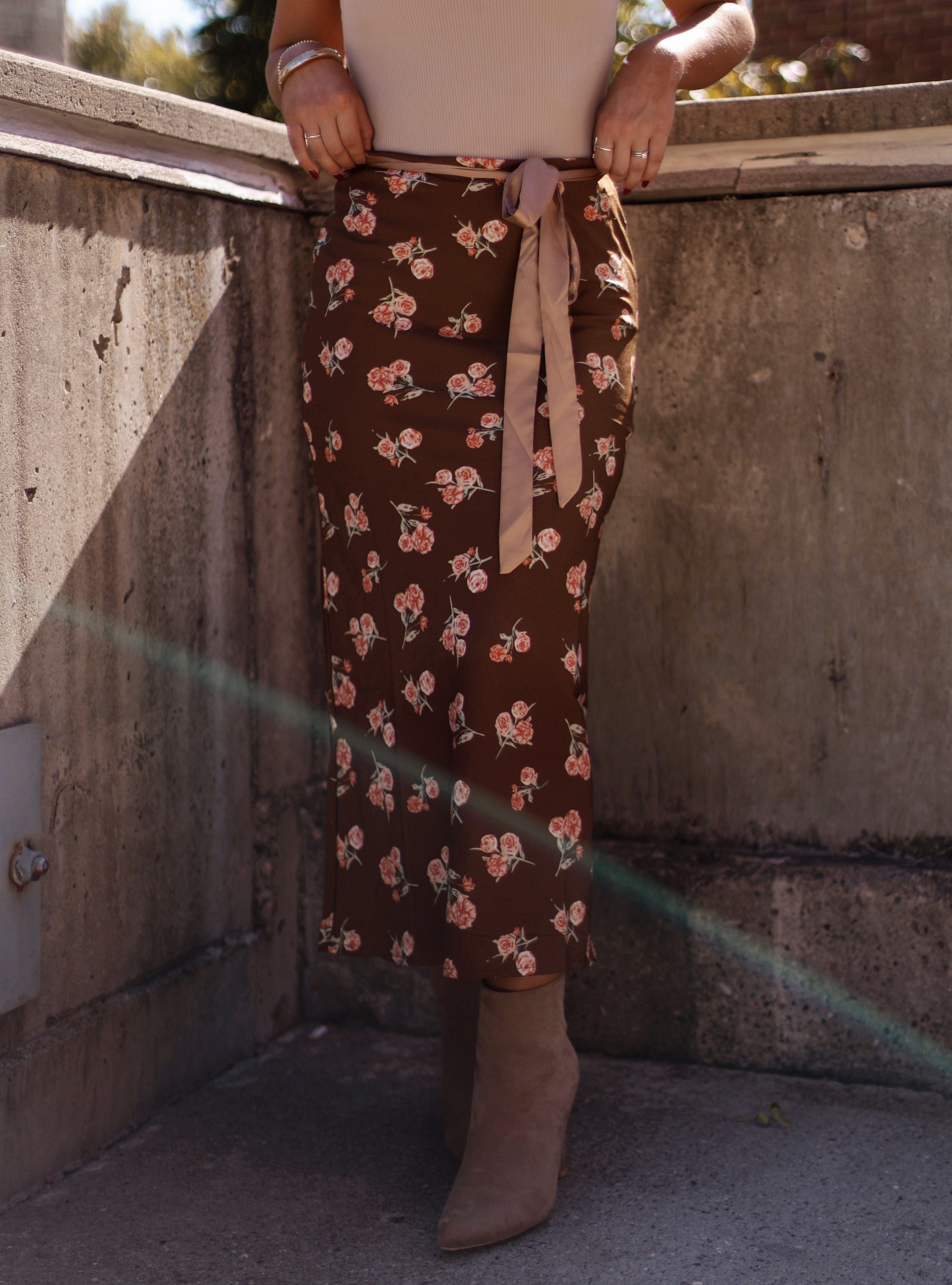 Indulge in the beauty and sophistication of our Chestnut Flora Skirt. Crafted with the finest materials, this skirt boasts a stunning chestnut floral pattern that will elevate any outfit.