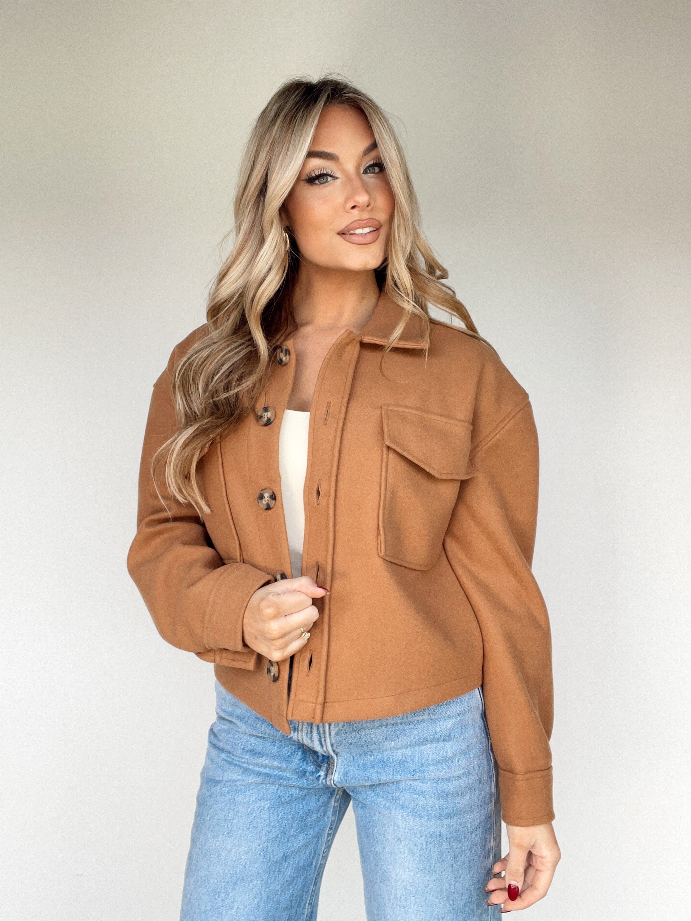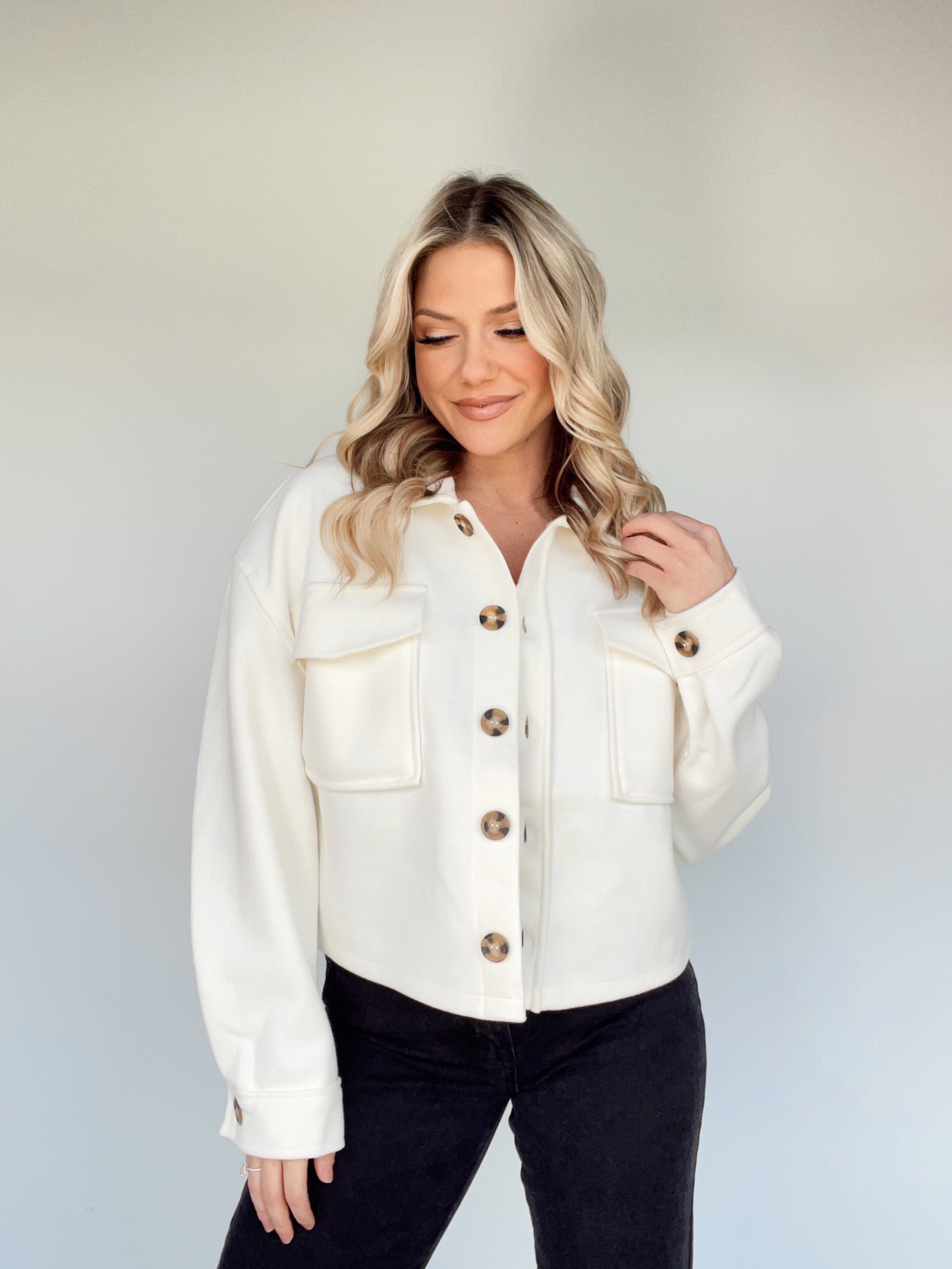 Add a touch of class to your winter wardrobe with this Chilly Chic Jacket. Its ultra-soft fabric, warm lining, and stylish pocket detail will keep you cozy, while the cropped cut, elevated button closures, and versatile hue ensure a trendy, chic look. Perfect for transitioning from dinner and drinks to brunch and shopping, this luxurious jacket is a winter staple you can rely on.