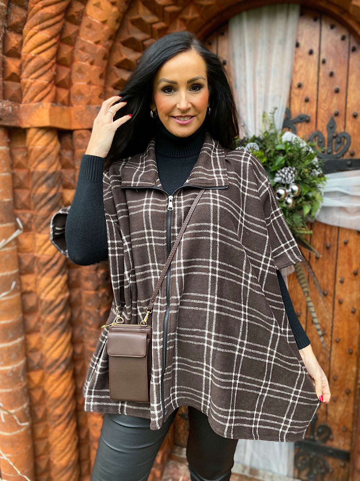 Chocolate High Neck Checked Jacket Jo