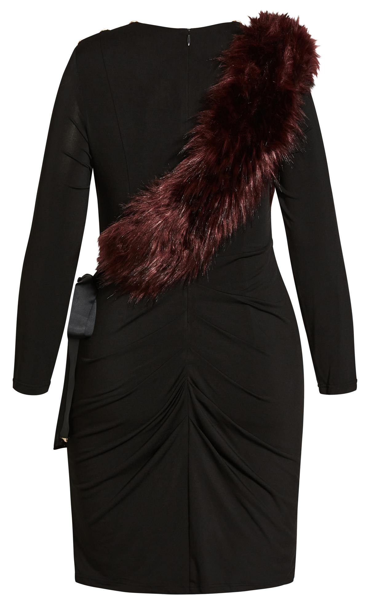 Make a stunning entrance with the City Chic Black Ruched Midi Dress with Detachable Faux Fur. The ruched detailing and detachable faux fur collar combine glamour and versatility. Perfect for special occasions or a stylish night out, the black hue exudes elegance. Embrace comfort and fashion with this City Chic dress that effortlessly merges style and sophistication, allowing you to stand out with confidence and grace.