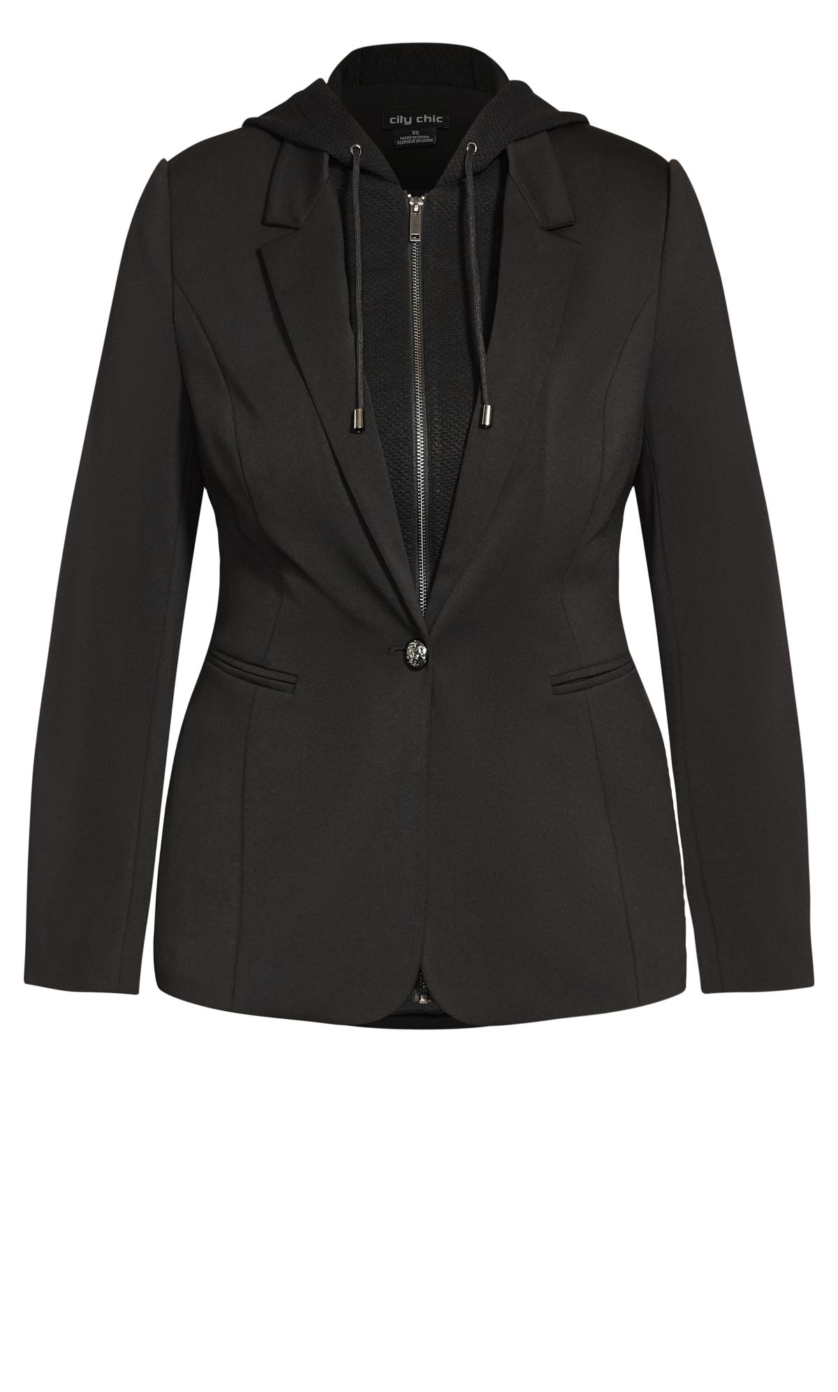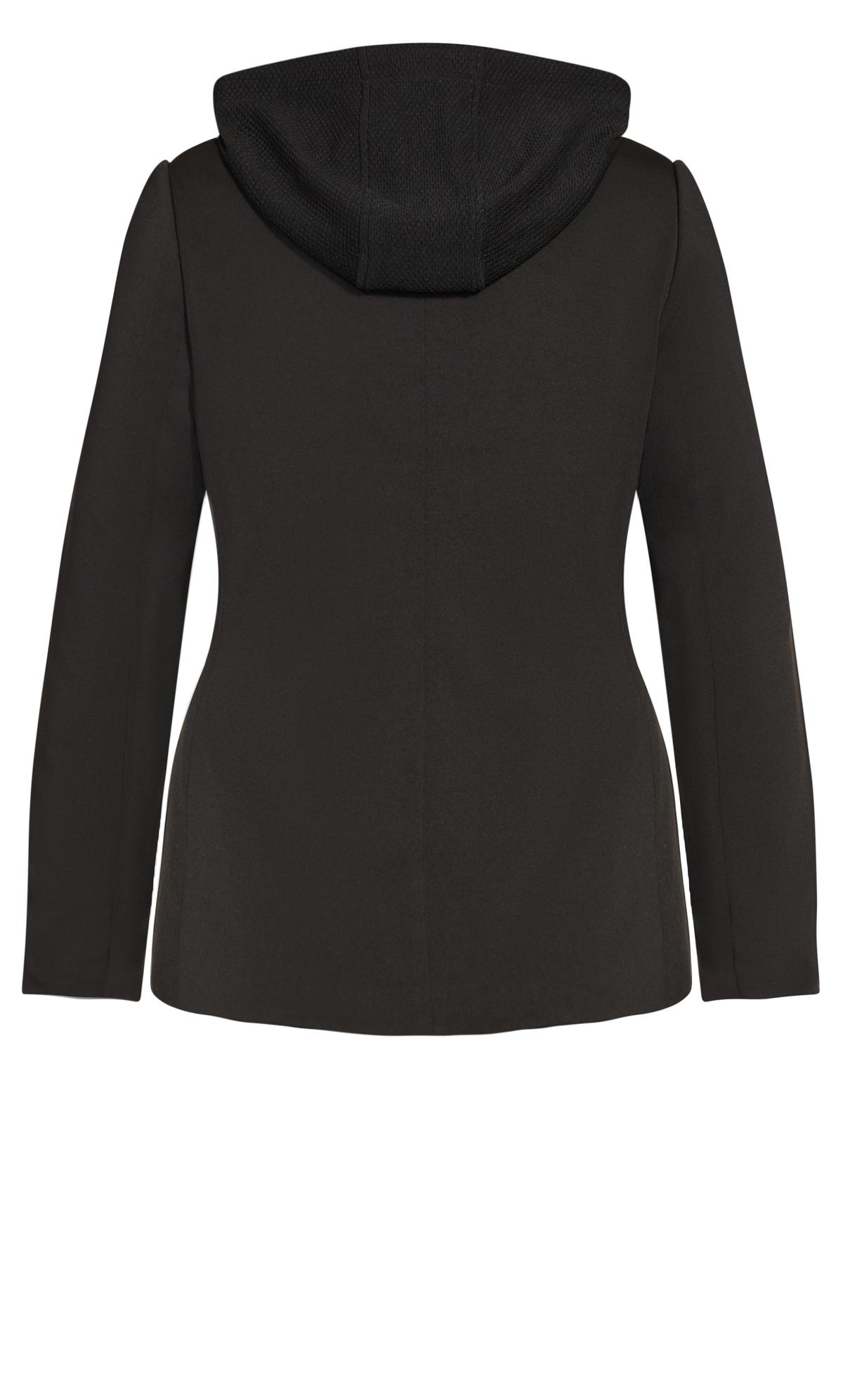 The Versatile Hoodie Jacket rocks business-casual like no other. Featuring a hoodie insert with the finish of a blazer-like exterior, this sleek jacket is designed for the modern woman!