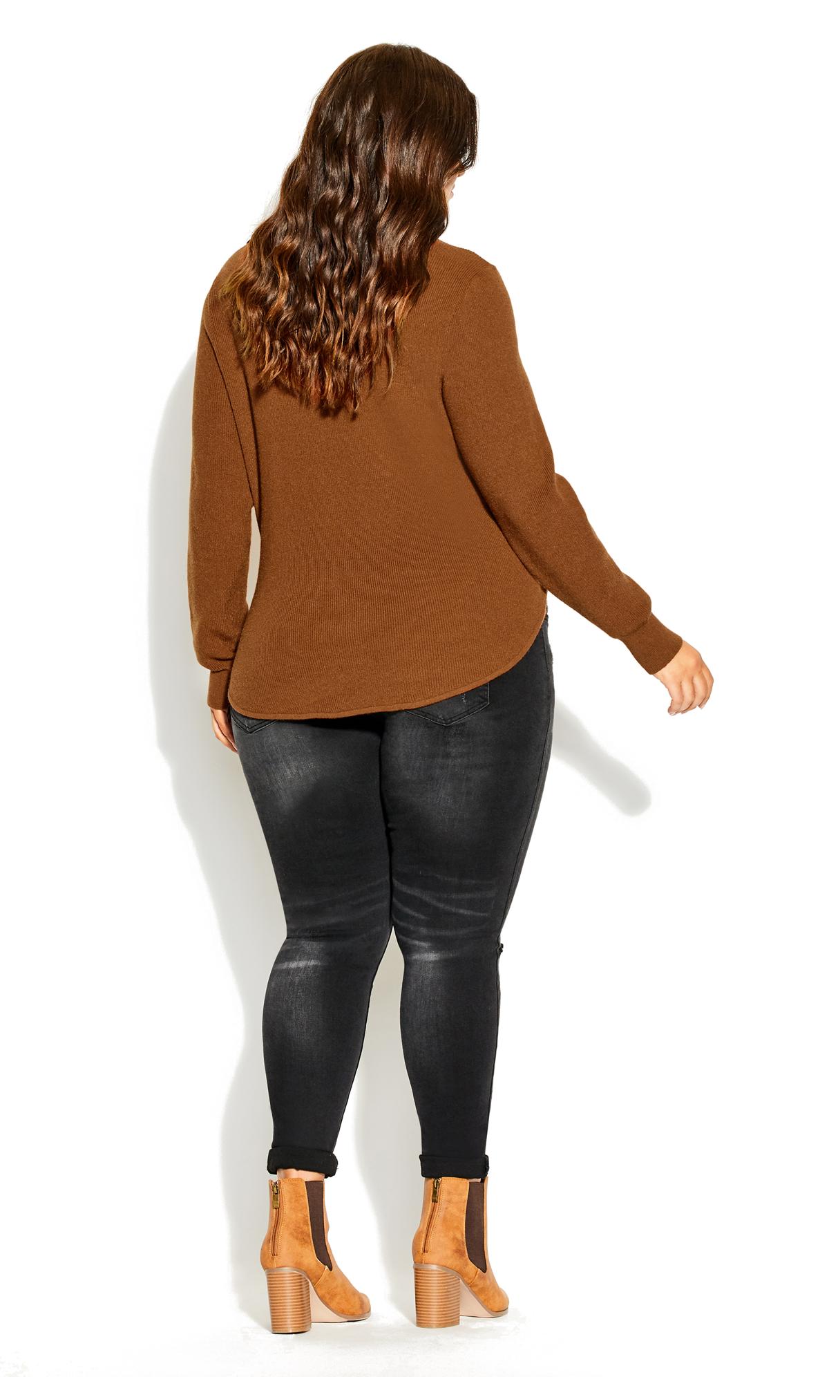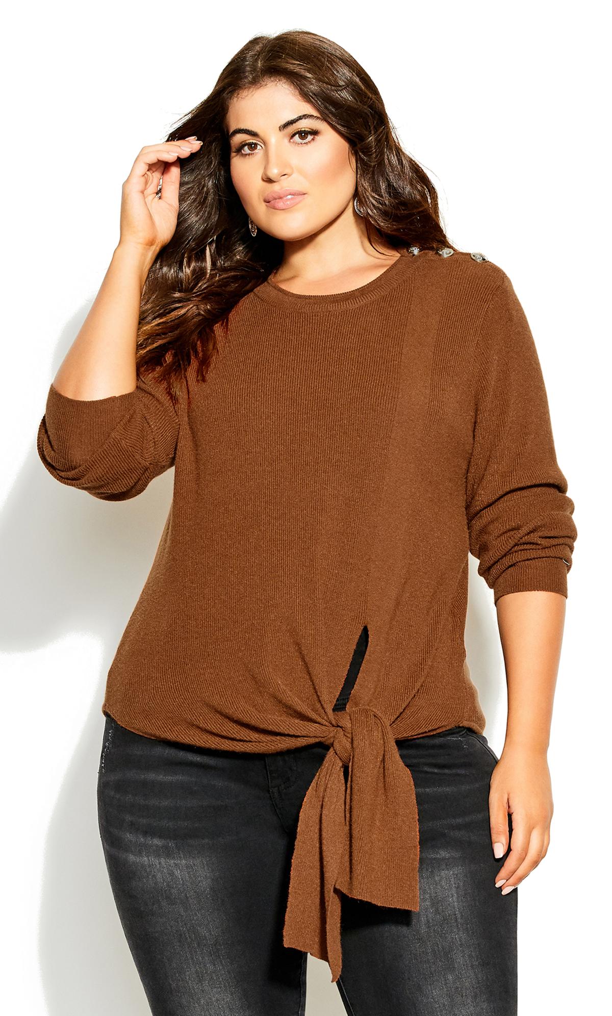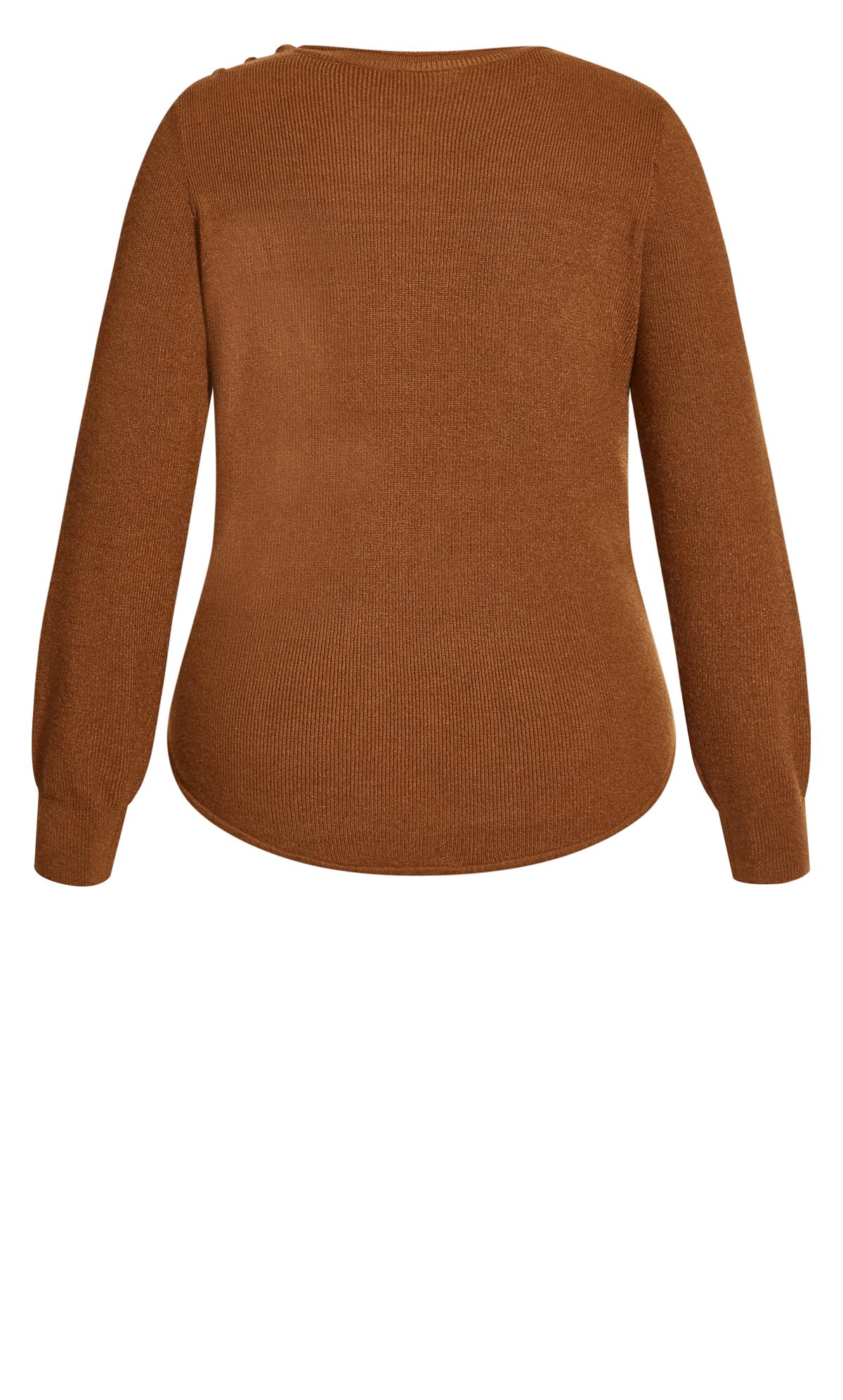 Trending in copper, the Royal Jumper is not to be missed this season. Featuring a tie front detail and gold button detailing, this chic jumper masters the art of winter layering.