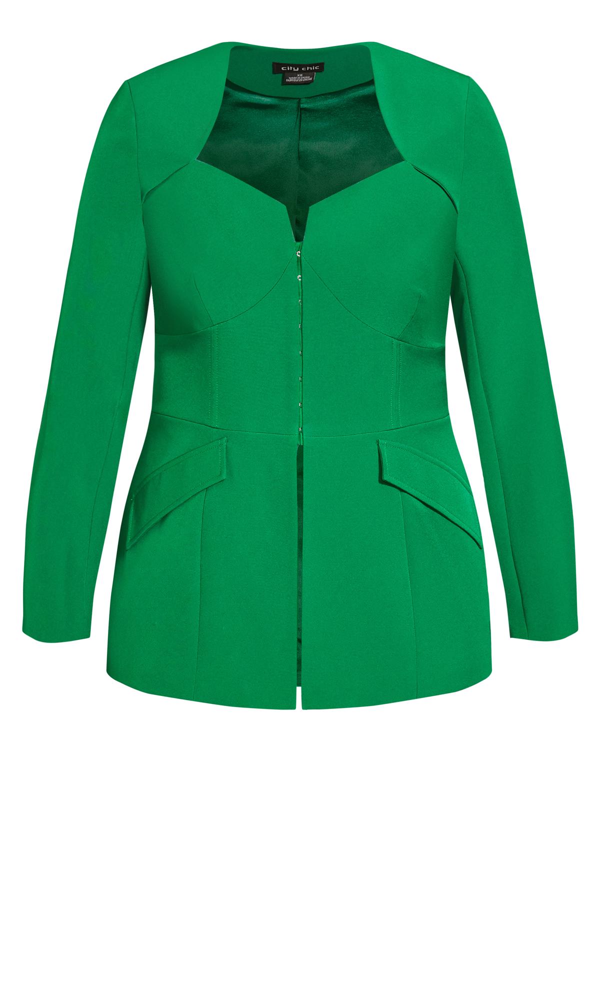 Get bold and confident when you strut in the Aurora Jacket. Offering a 7 hook and eye front closure, faux front pockets and flattering peplum silhouette, this jacket exudes boss babe vibes.