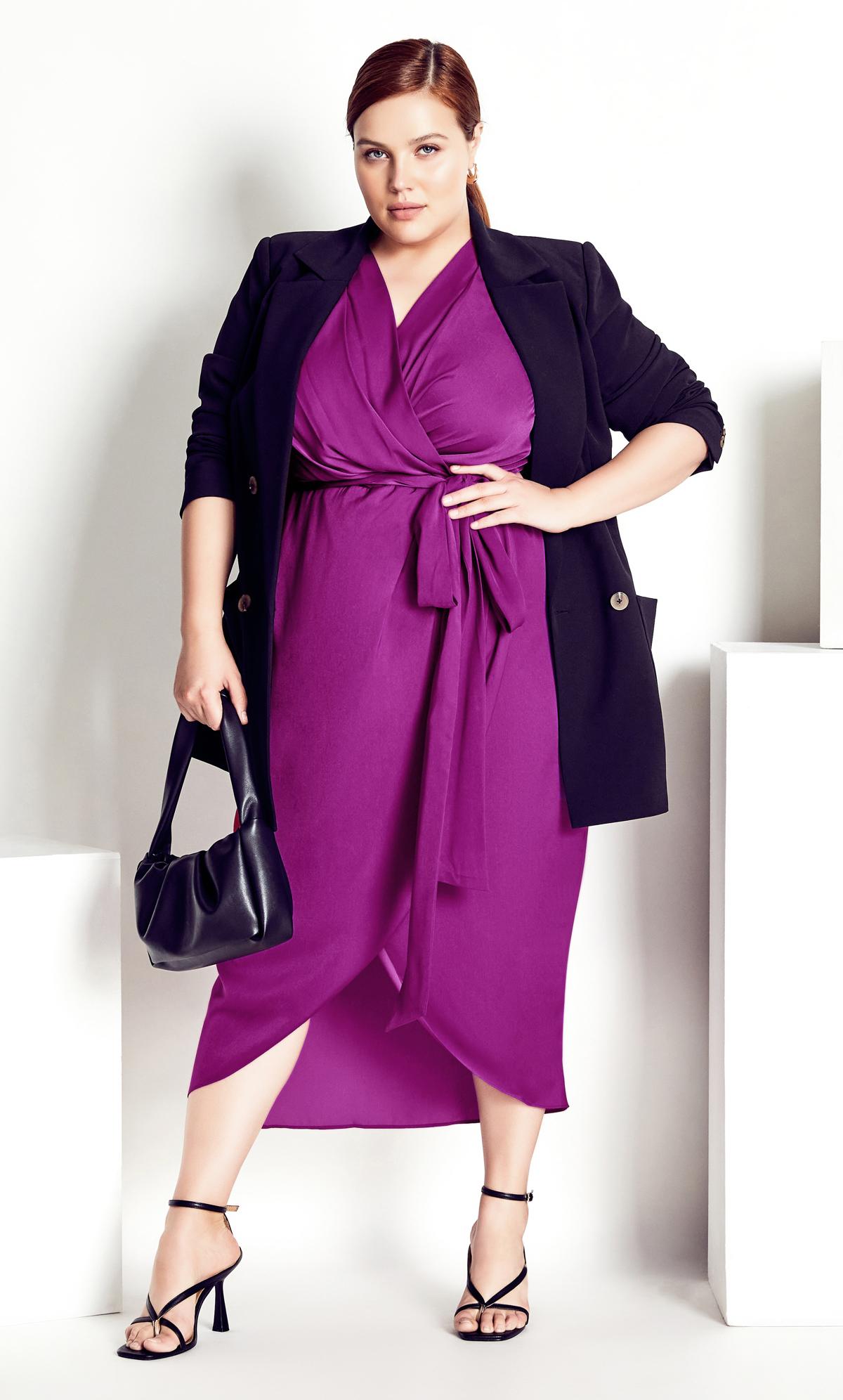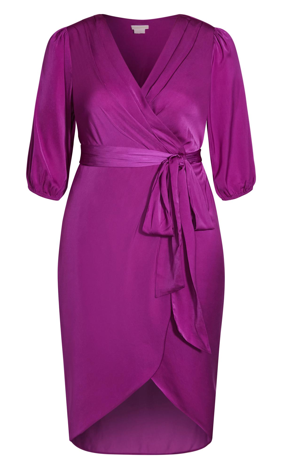 Opt for an air of luxury with our utterly glamorous Opulent Elbow Sleeve Dress! Made to drape and flatter your incredible curves, this dress offers lavish satin, a faux wrap fit and fabulous puff sleeves.
