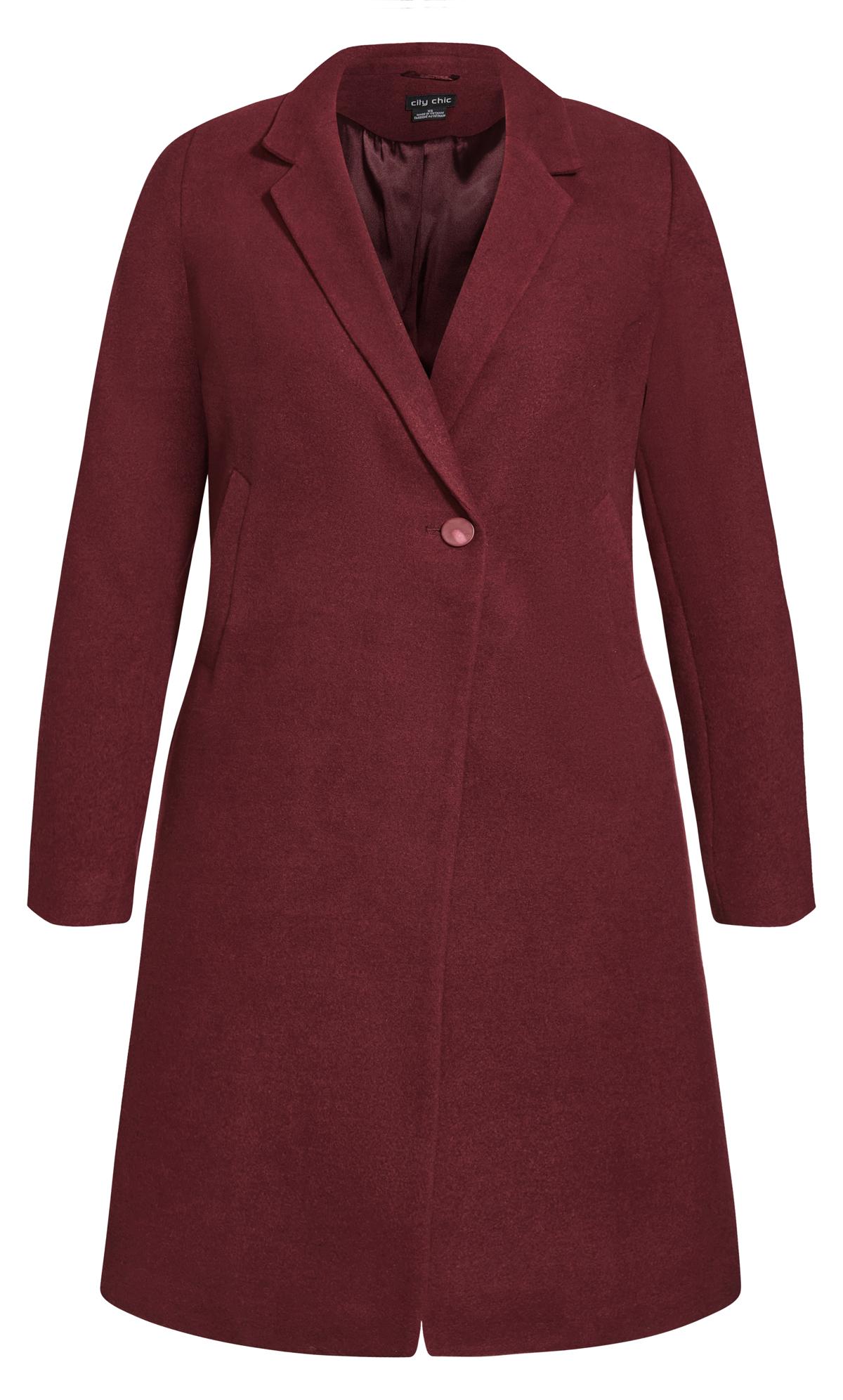 Elevate your formal ensemble with the City Chic Burgundy Red Midi Formal Coat. The rich burgundy hue exudes sophistication, while the midi length adds a touch of elegance to your look. Whether attending an event or simply stepping out in style, this coat effortlessly combines warmth and style.