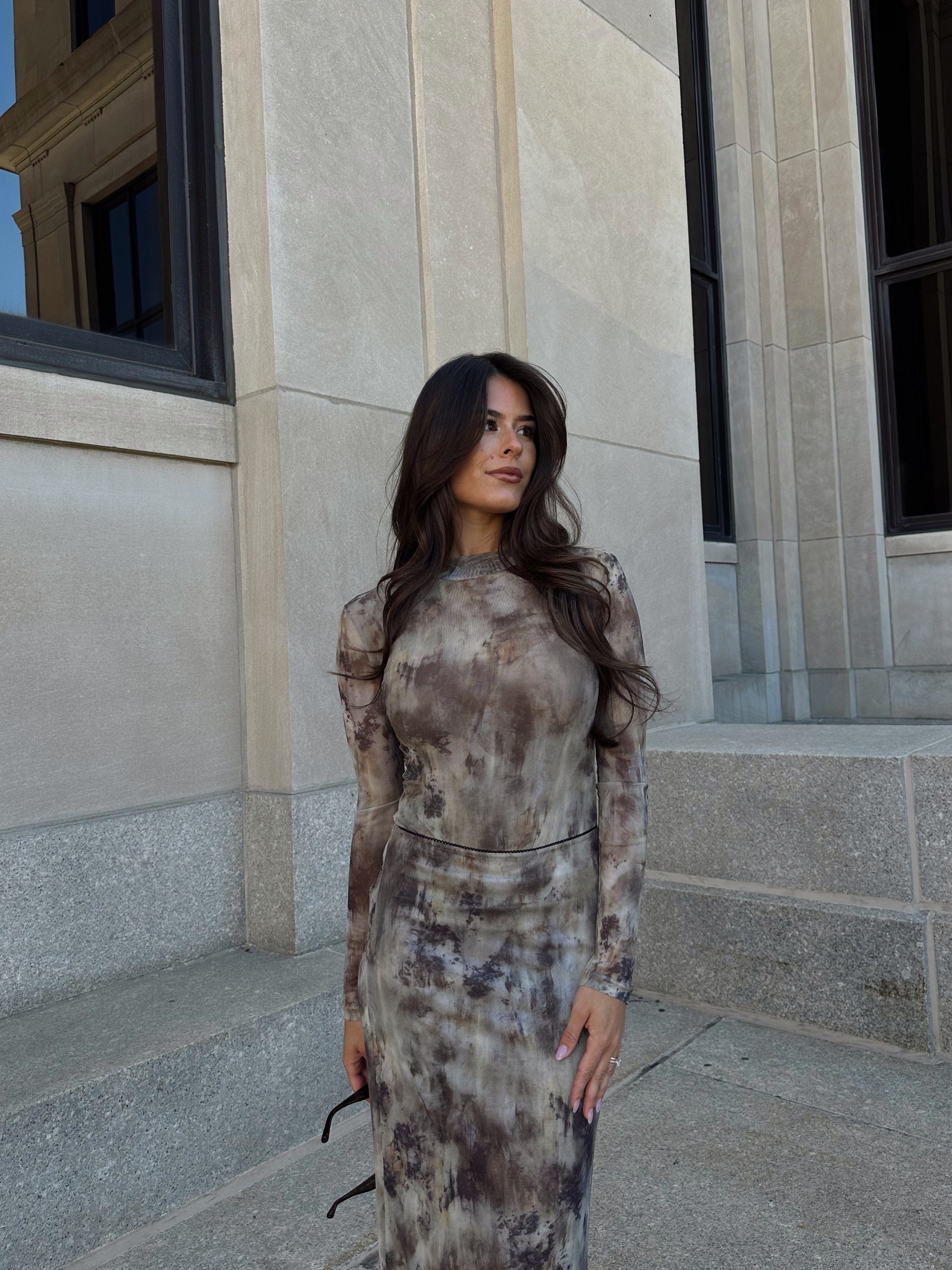The City Skies Bodysuit pairs perfectly with the City Skies skirt (sold separately). Made with sheer, stretchy fabric, it features a thong bottom with snap closure and a mock neck. Elevate your style with this versatile piece.