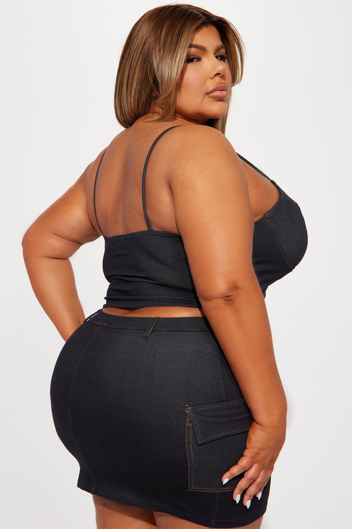 - Pair Back To "Claire Knit Denim Mini Skirt"