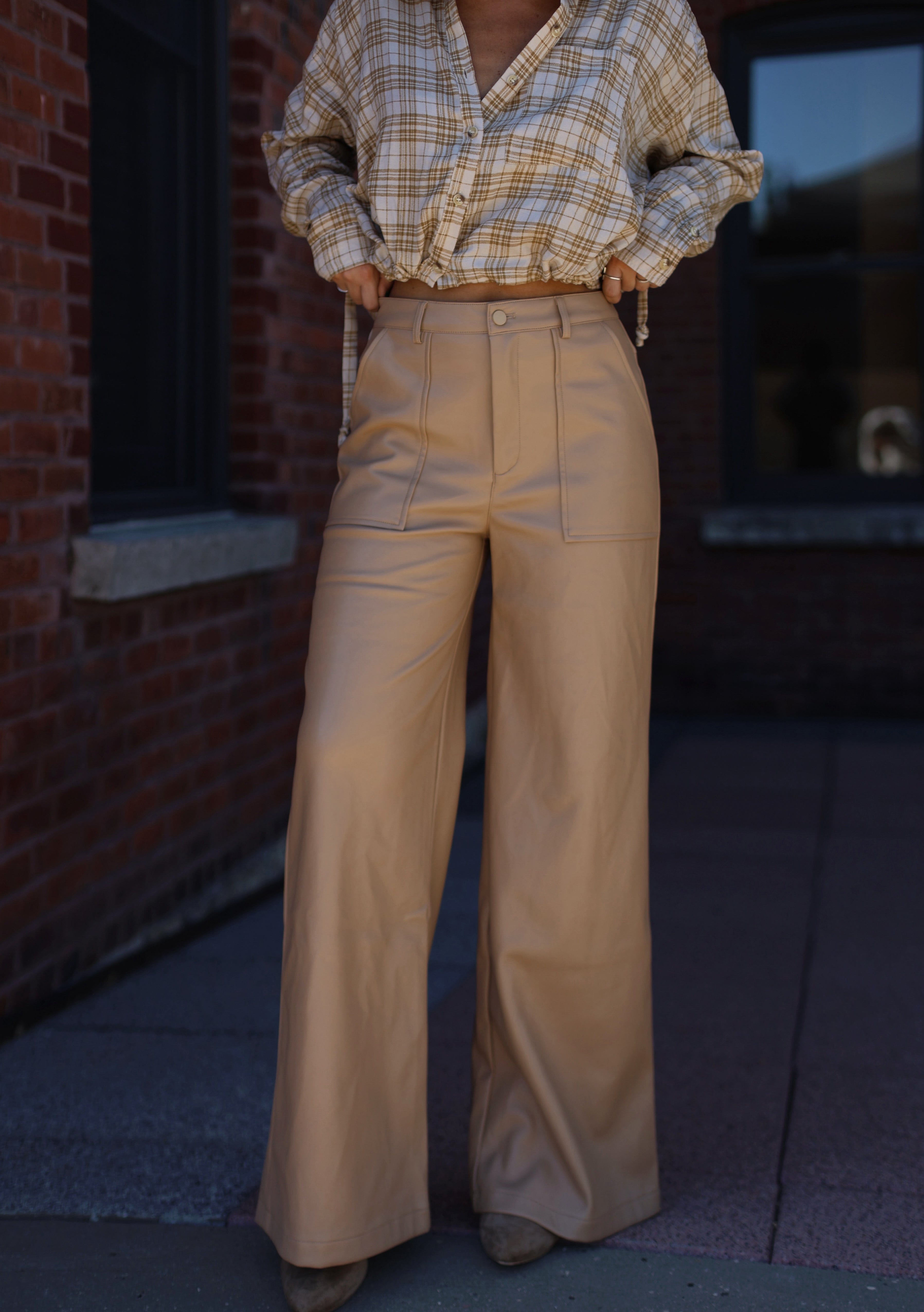 Our Closet Icon Leather Pant embodies luxury and sophistication with a modern edge. Crafted from faux leather, it features a comfortable high-waisted, slightly oversized fit with classic pocket details for a timeless look. The chic wide-leg cut is right on trend for fall, making it ideal for an elevated outfit, whether you’re headed to the office, out to dinner, or for drinks. For a more fitted style, consider sizing down.