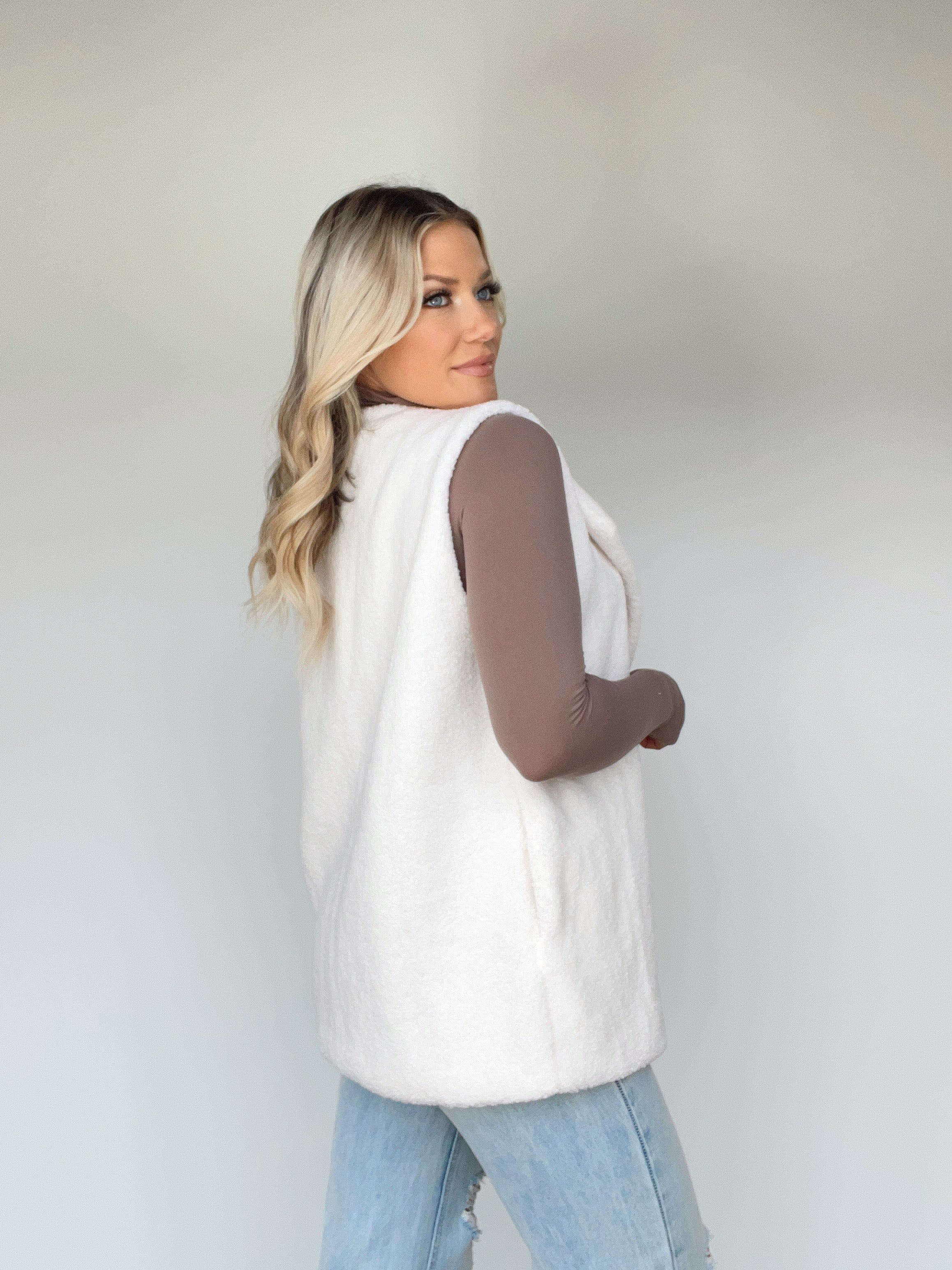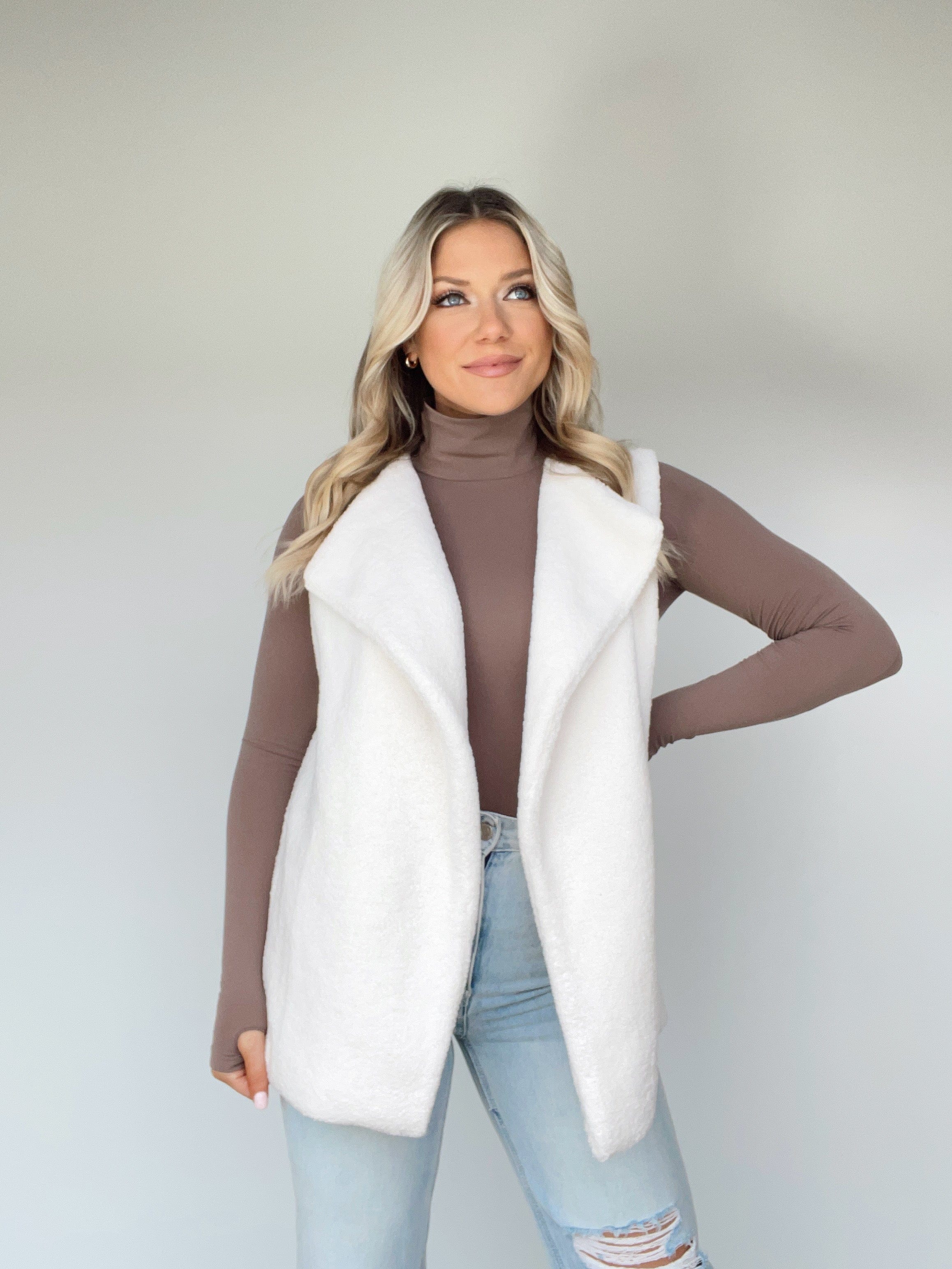 The Cloud Nine Sherpa Vest is the perfect winter essential for stylish layering. Filled with features that combine luxury, comfort, and fashion, this vest is the epitome of chic. From the ultra-soft sherpa with folded detailing, to the bright color and cozy stretchy fit, the Cloud Nine Sherpa Vest adds a touch of elegance and sophistication to a relaxed brunch look or an elevated casual shopping style.