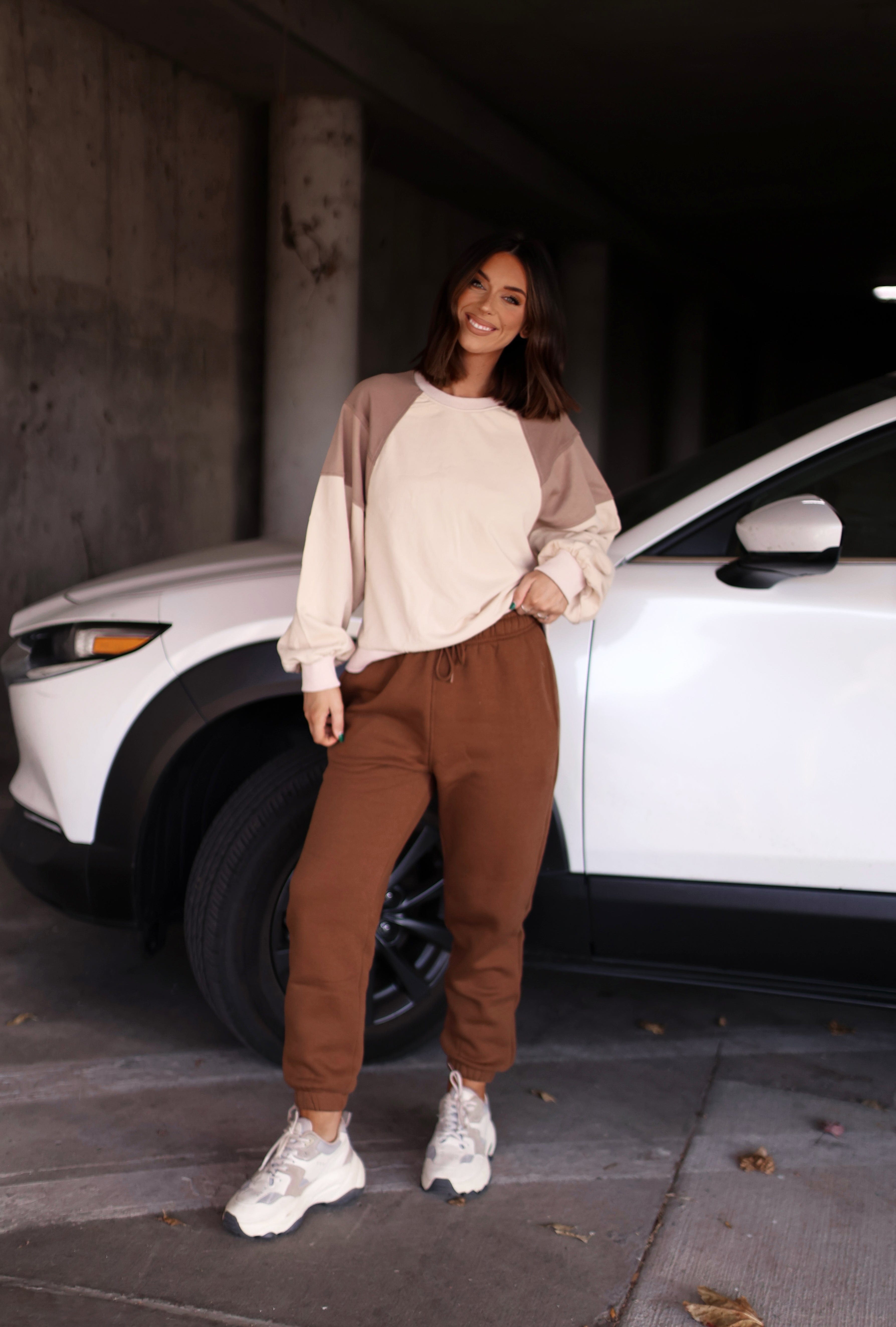 This colorblock raglan sleeve top is made from a stretchy material, ensuring comfort and ease of movement. The long sleeves make it perfect for colder weather, while the sweatshirt material adds a cozy touch. The colorblock design adds a stylish element, making it a versatile and trendy addition to any wardrobe.