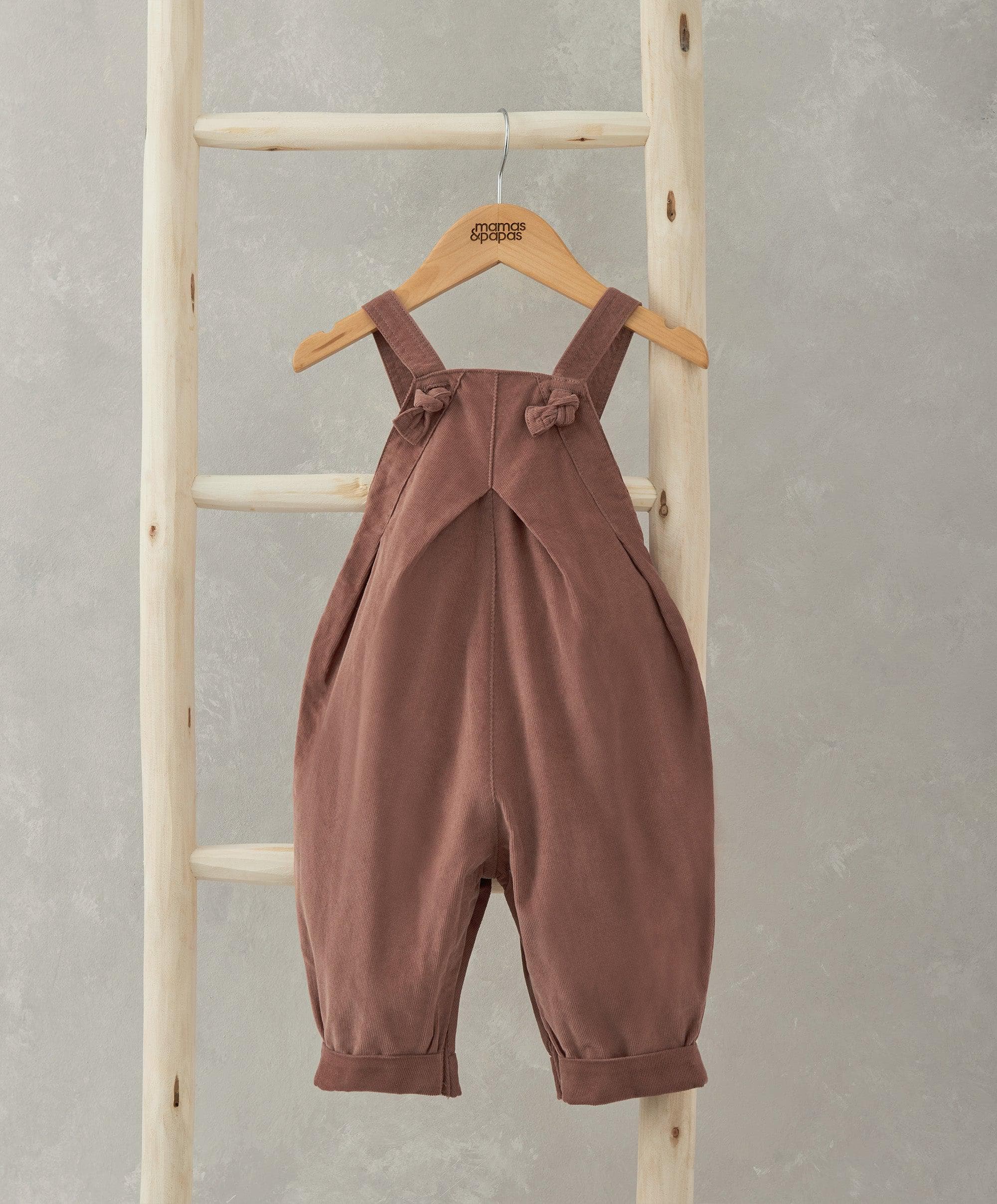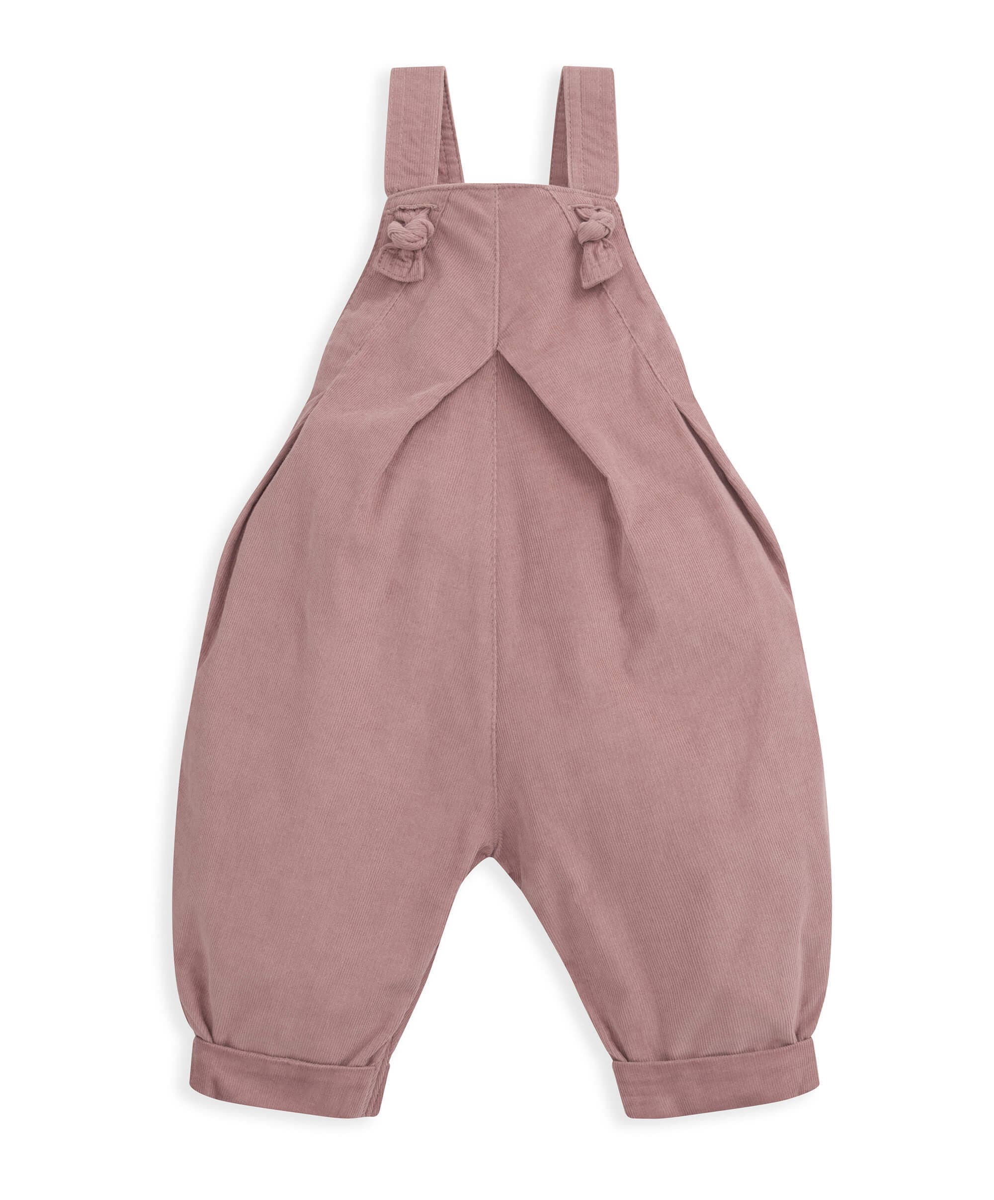 Unique needle cord fabric elevates a basic dungaree to a special wardrobe addition. Designed with function in mind, featuring adjustable straps with button fastening and concealed gusset opening. Elasticated channel at back and turnback cuffs allow room to grow and plenty of room to move and play comfortably. Finished with pleats at front and secure side seams.