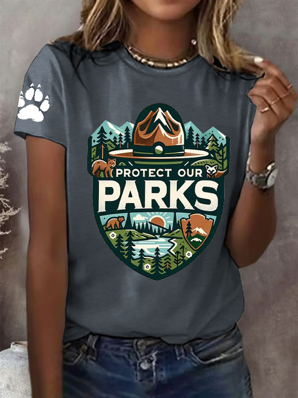 Cotton Women Protect Our National Park Printed Crew-Neck T-Shirt 9522598