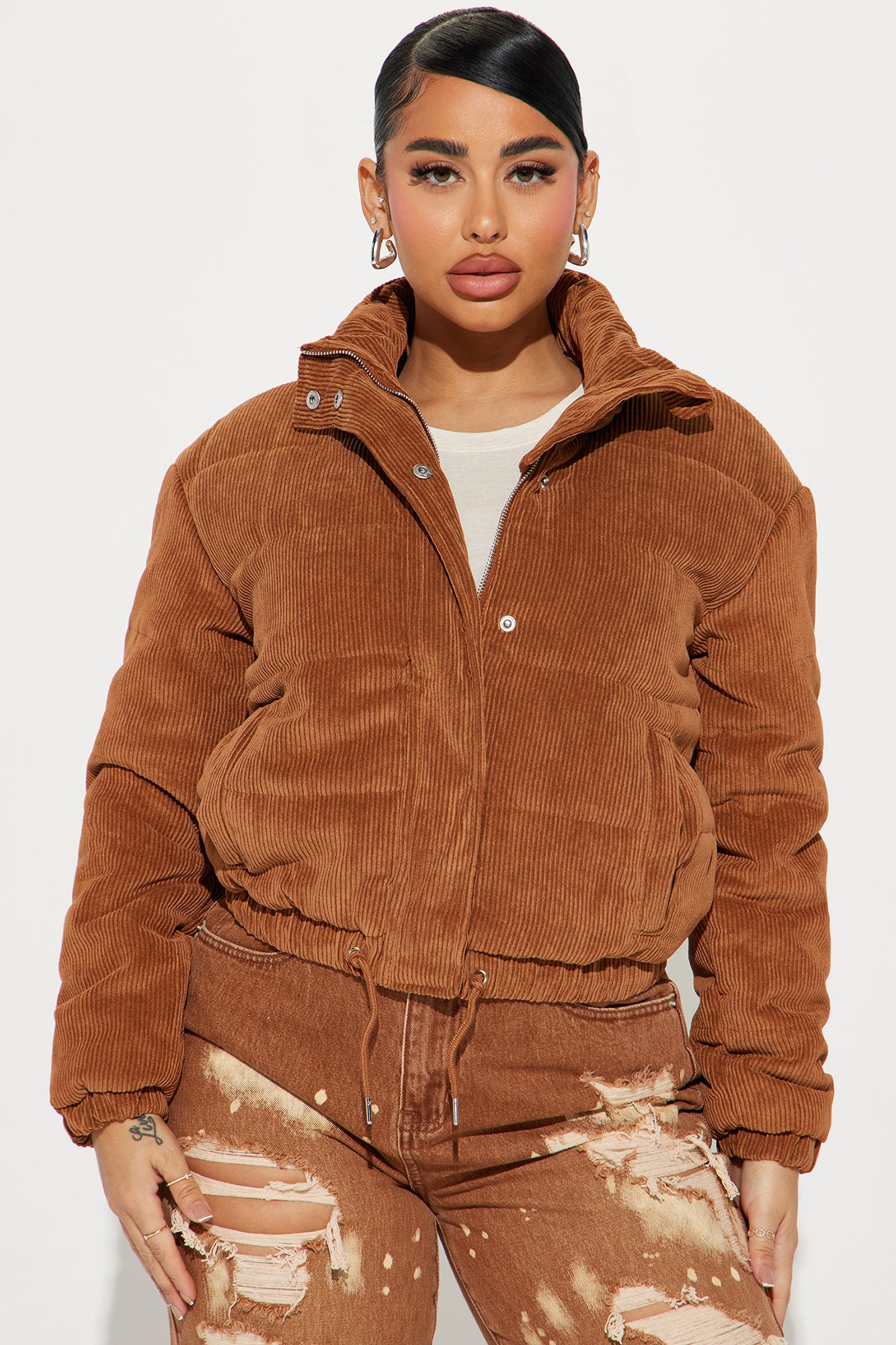 - Cropped Corduroy Puffer