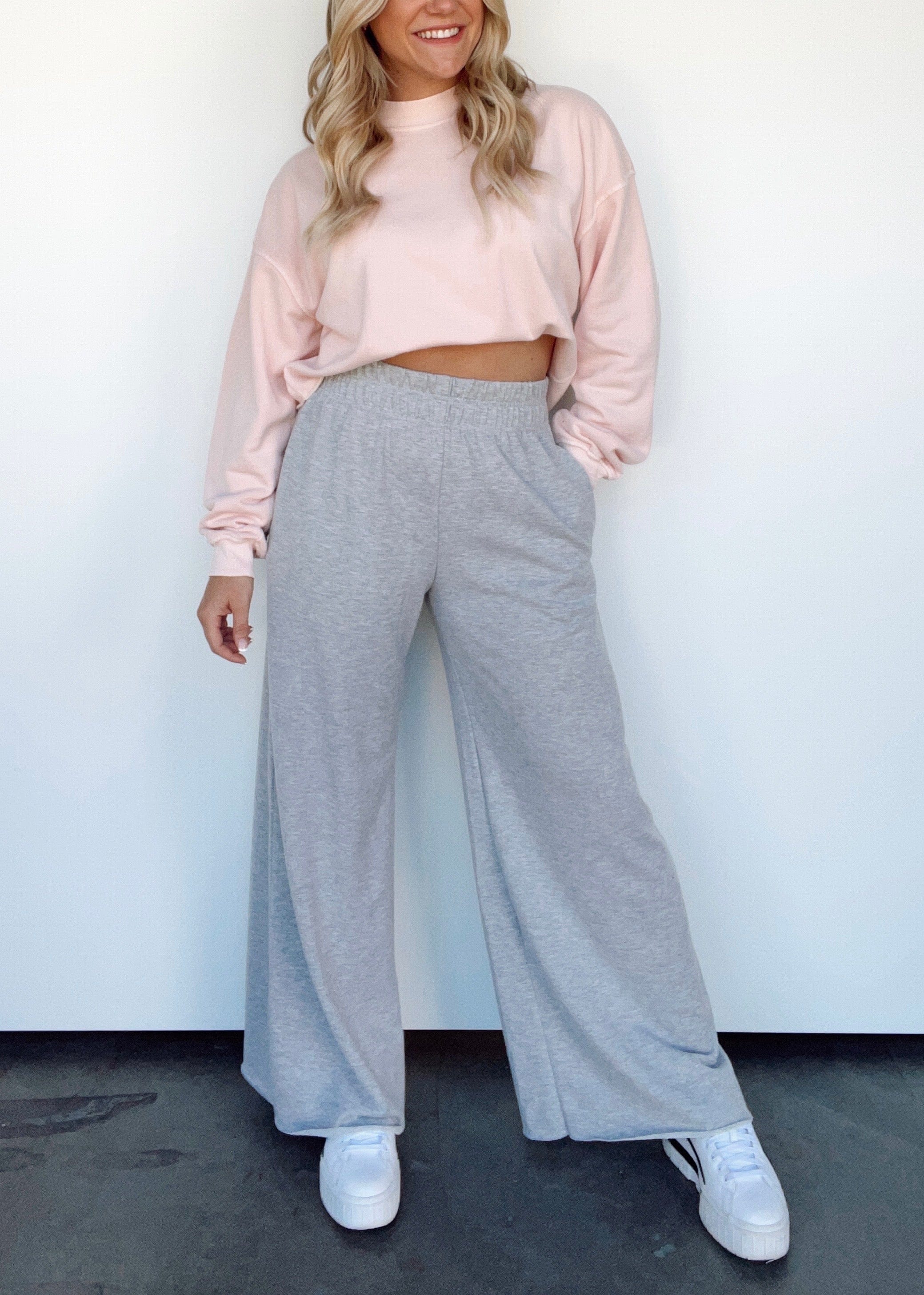 Cozy Comfort Sweatpants are the ultimate in luxurious leisurewear. Crafted from a soft, stretchy fabric, these wide-legged pants feature a high waisted design and elasticated waistband, making them the perfect choice for stylish lounging, errands or leisure. With pocket details, the pants boast a trendy, elevated look, making them versatile enough for any occasion.