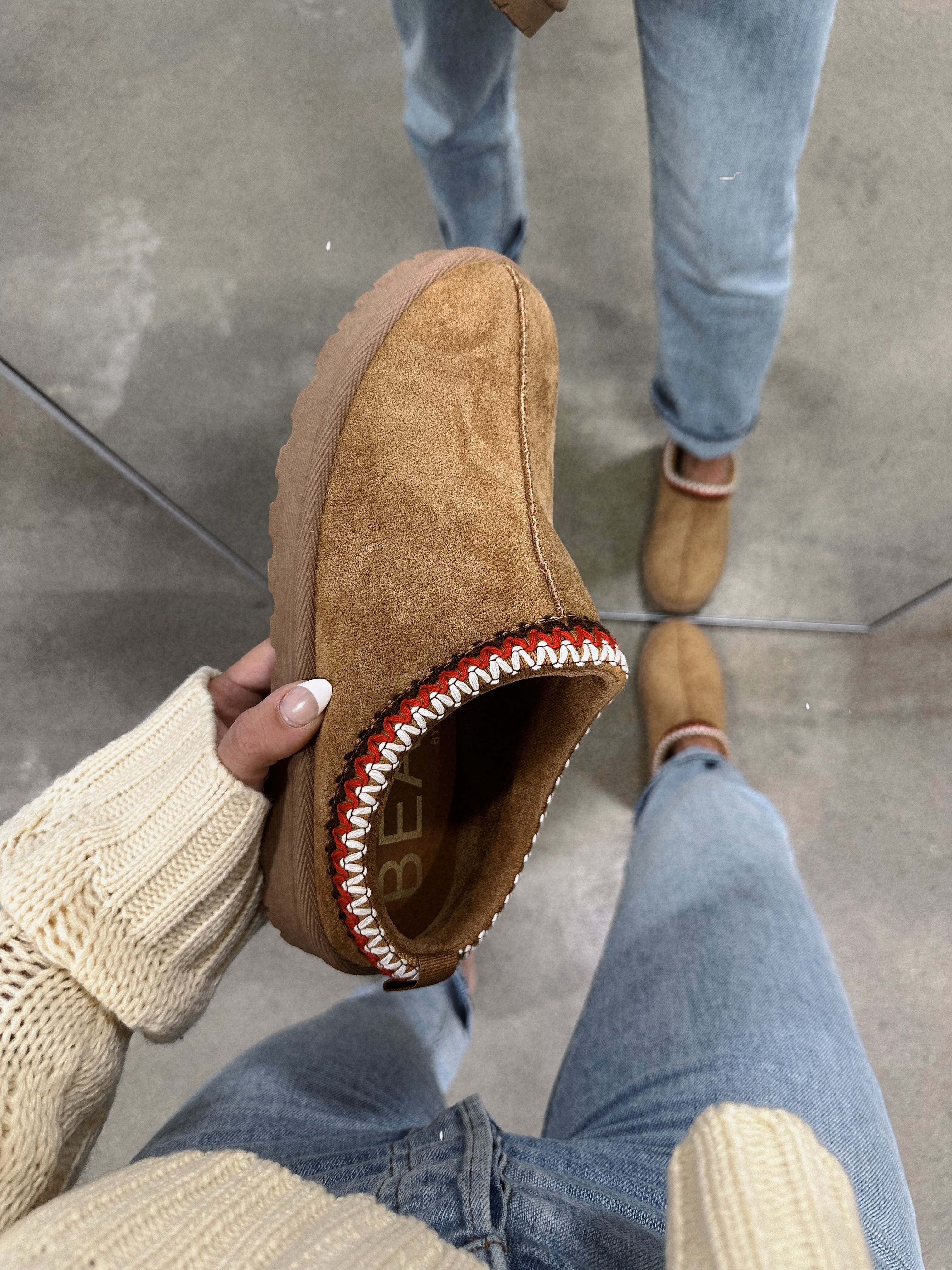 Meet the Cozy Cruiser Slides from our Fall collection - lounging shoes designed for supreme comfort and exceptional style. Expertly crafted with a soft faux suede and intricate embroidered details, these slip-on slides lend themselves to versatile use, from weekend errands to cozy evenings at home. Enjoy all-day comfort and trendy fashion with these must-have shoes.