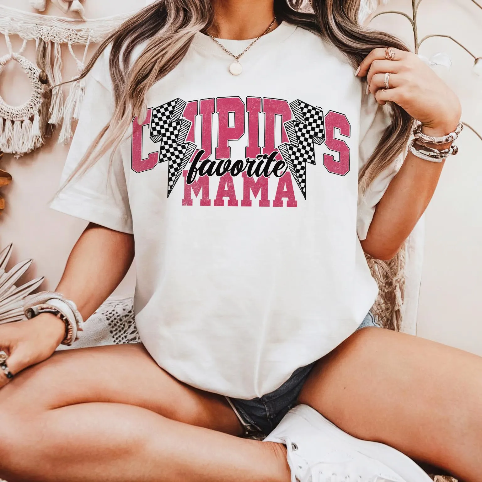 Cupids Favorite Mama Print Round Neck Short Sleeve T-Shirt 9519495