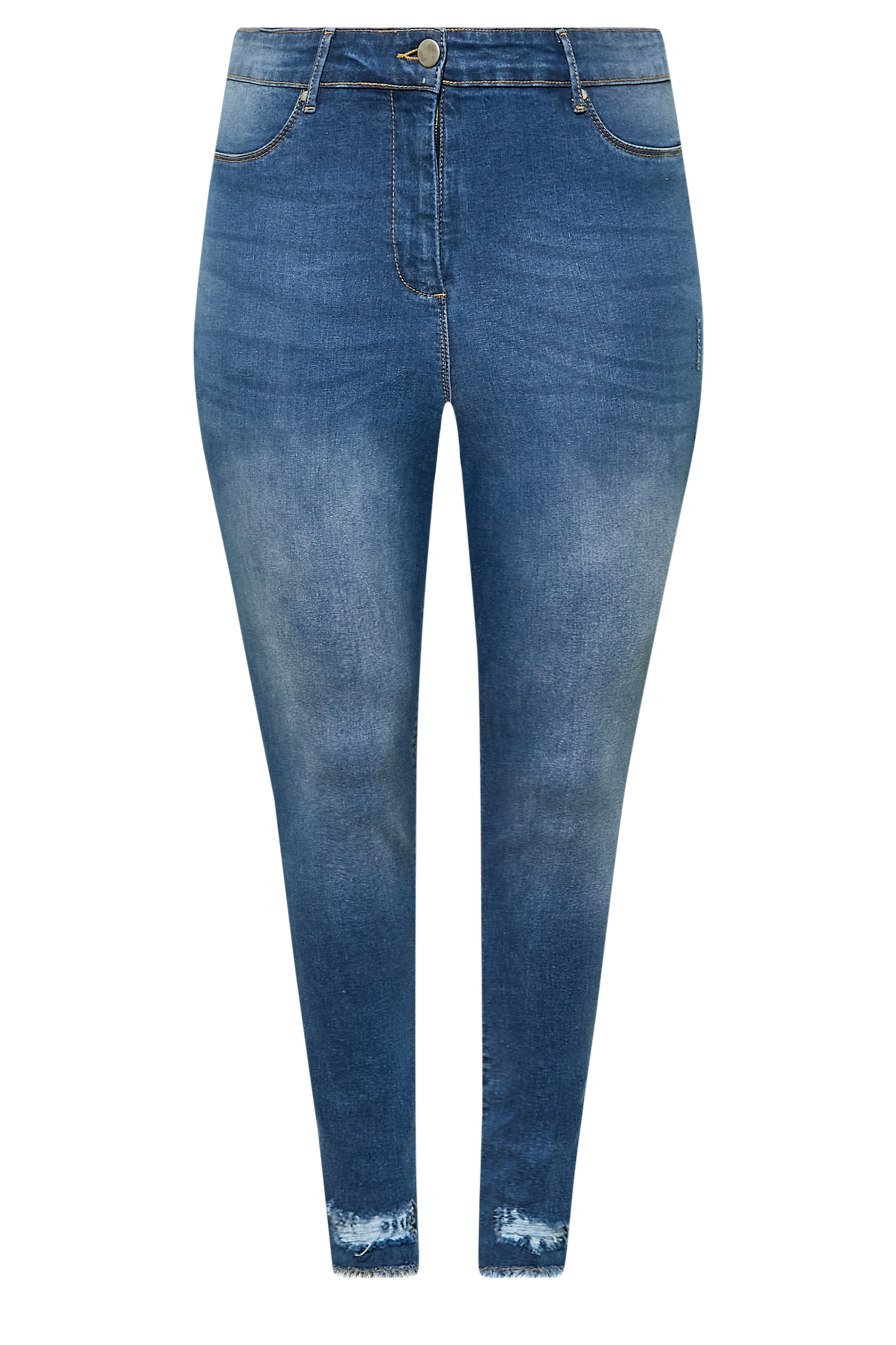 YOURS Curve Blue Distressed AVA Lift and Shape Stretch Skinny Jeans 255849