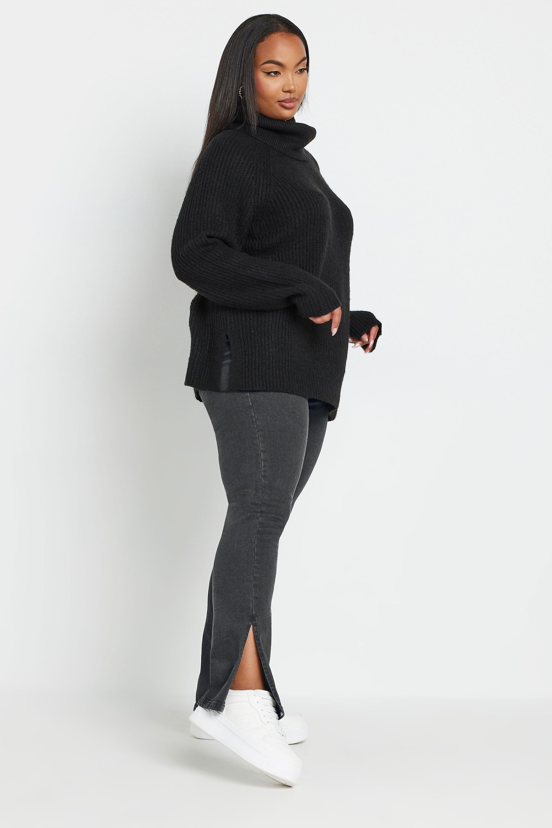 • YOURS Curve Black Side Split Stretch Straight Leg Jeans