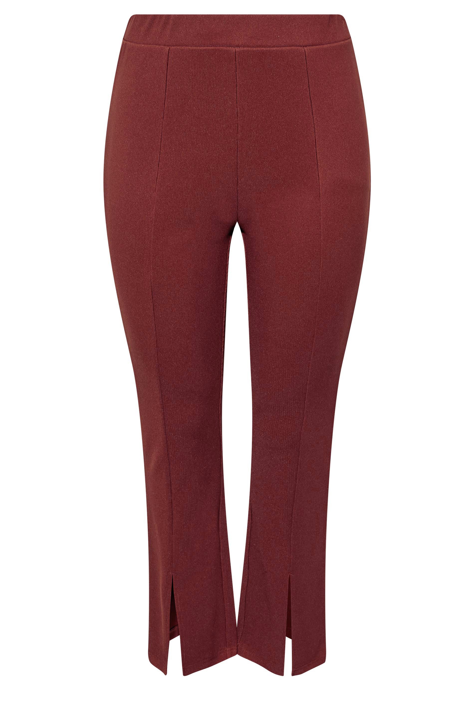 Stay on trend with these plus size leggings. Made from a comfortable jersey fabric, they feature an elasticated waistband, front split hems, and are complete in a high-waisted, flared style. Pair with a knit jumper and boots for a casual weekend outfit.