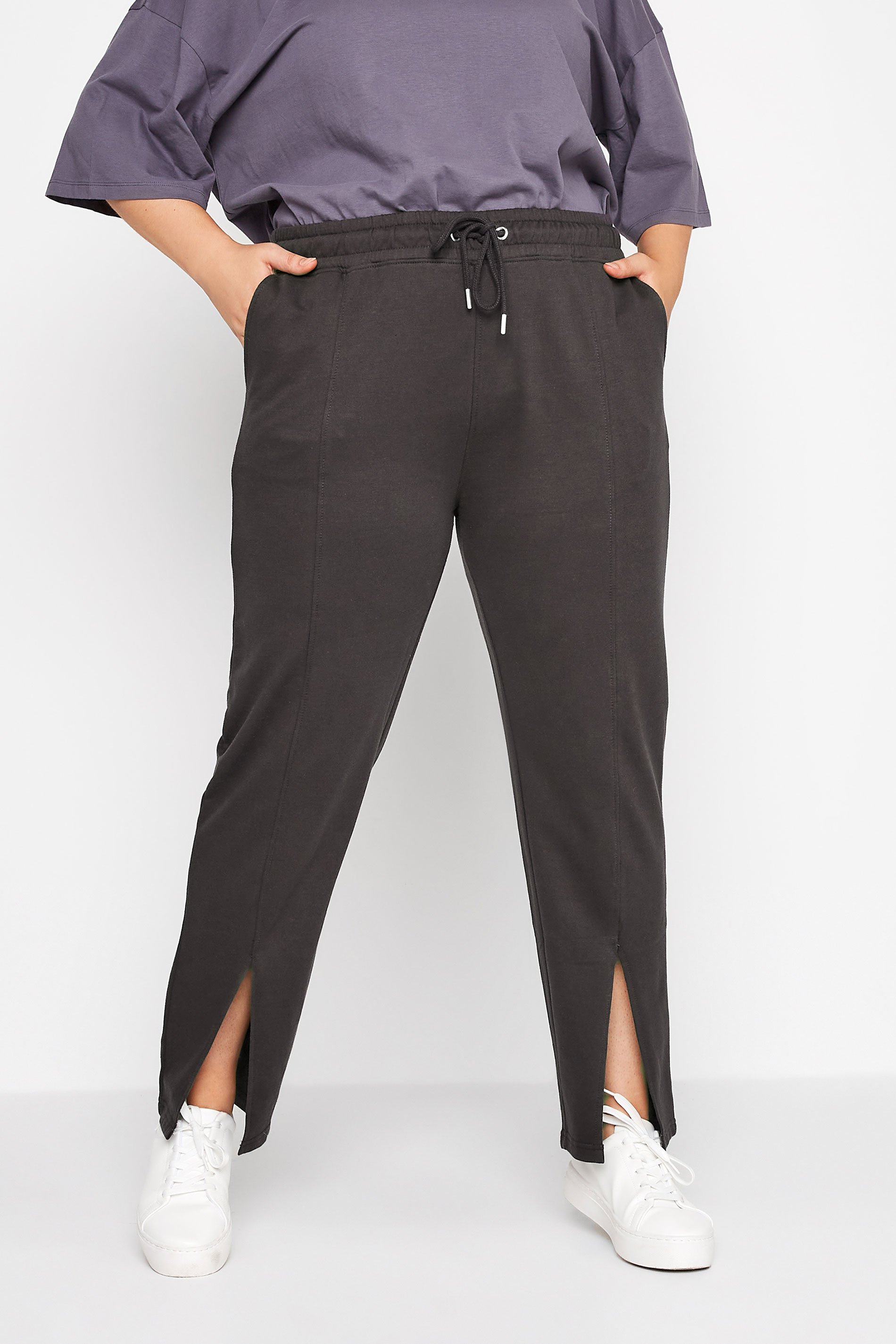 Update your basic collection with these new-in plus size joggers. Made from a comfortable jersey fabric, they feature an adjustable drawstring waist with a front split hem, finishing in a straight leg style. Team with a plain t-shirt, a puffer jacket and trainers for effortless off-duty appeal.
