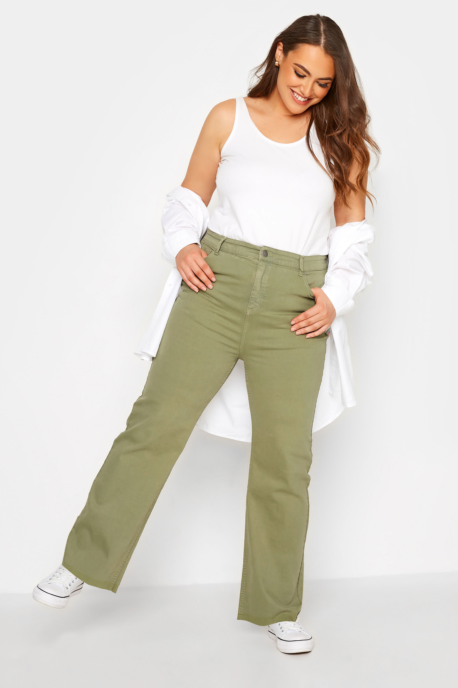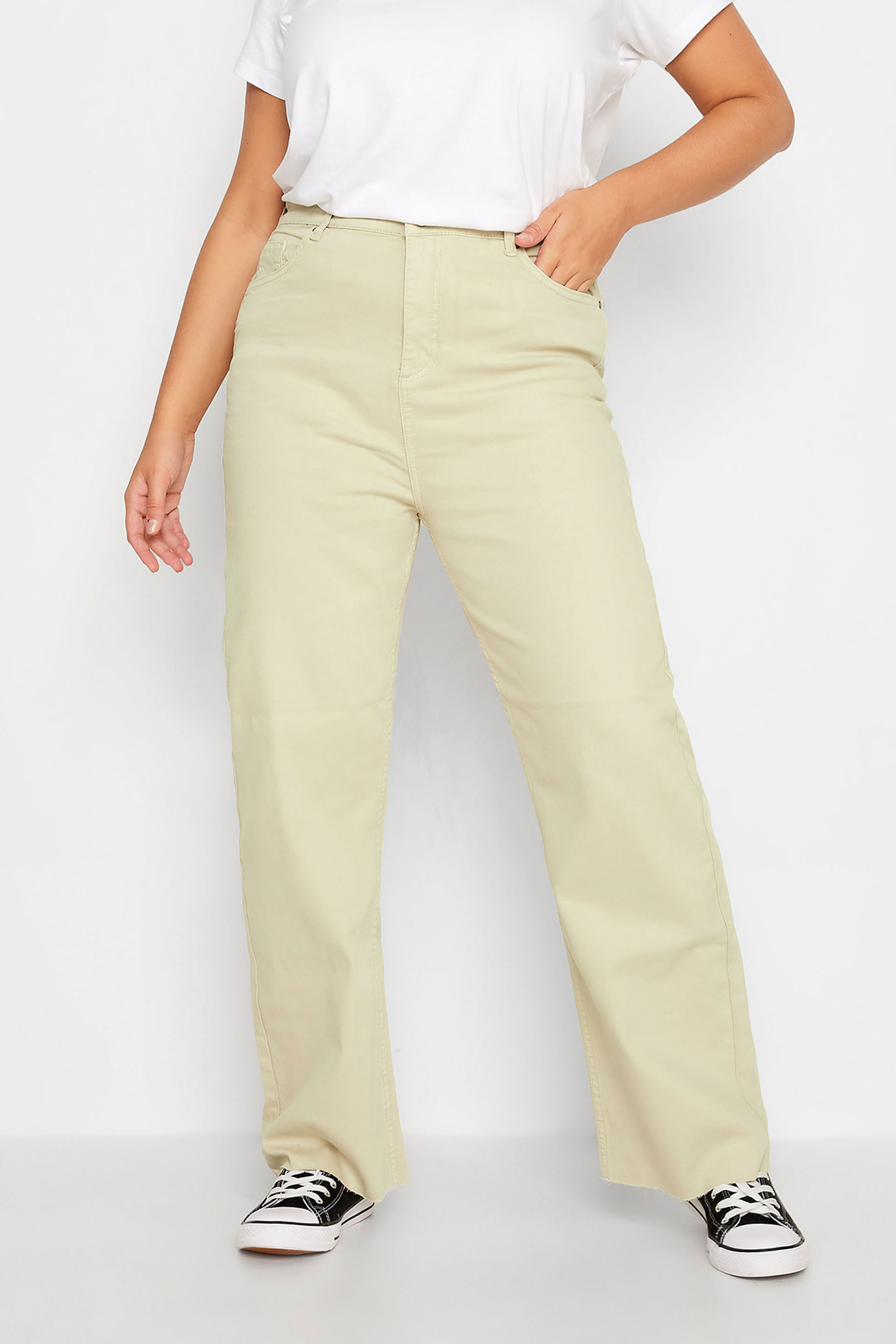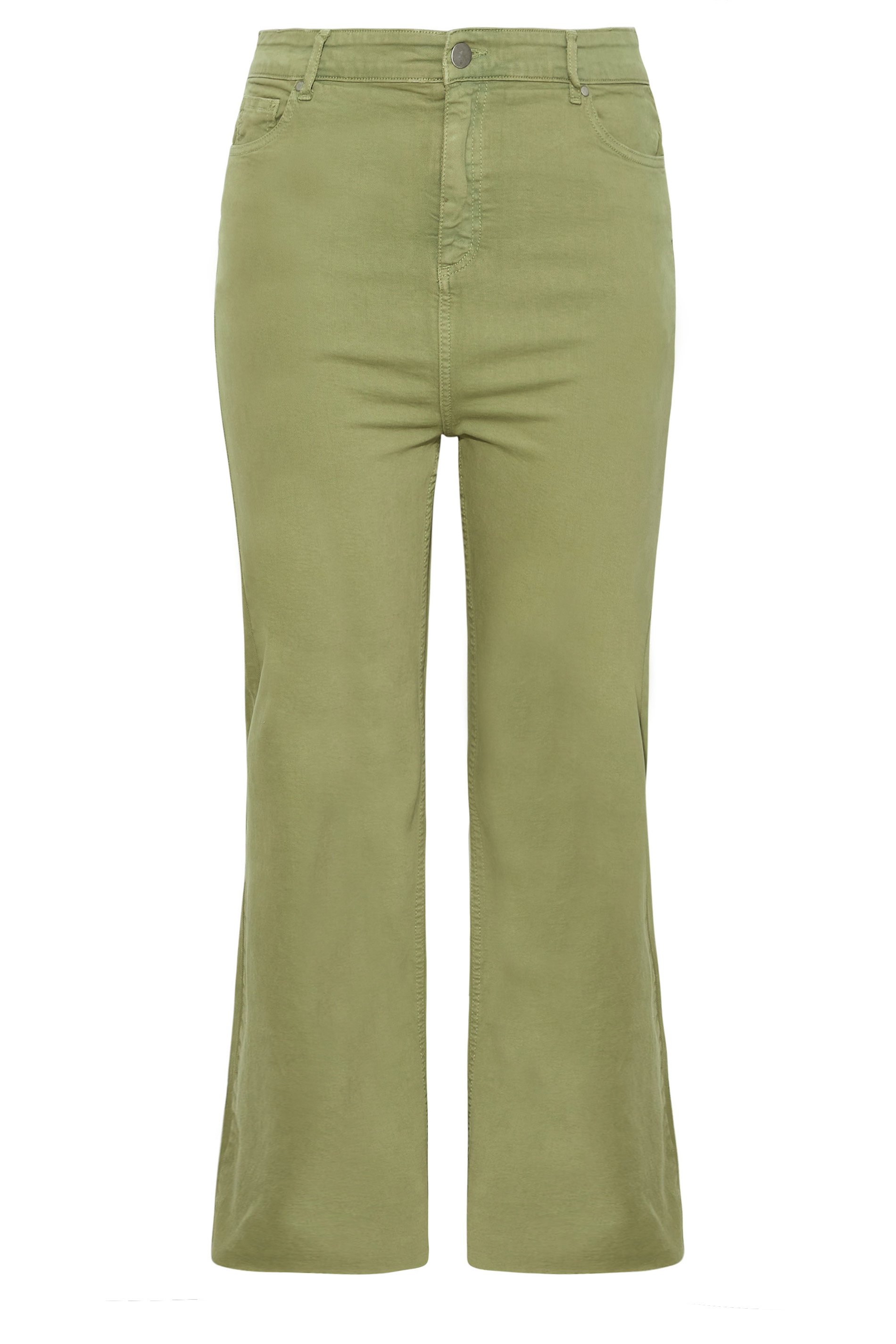 These YOURS Curve Khaki Green Stretch Wide Leg Jeans are the perfect addition to your wardrobe. Featuring a wide leg fit, zip fly and button fastening, belt loops, five functional pockets, high waisted, and frayed hems, these jeans are made from a comfortable stretch fabric and are machine washable. Crafted from 98% cotton and 2% elastane, these jeans are sure to become a wardrobe staple.