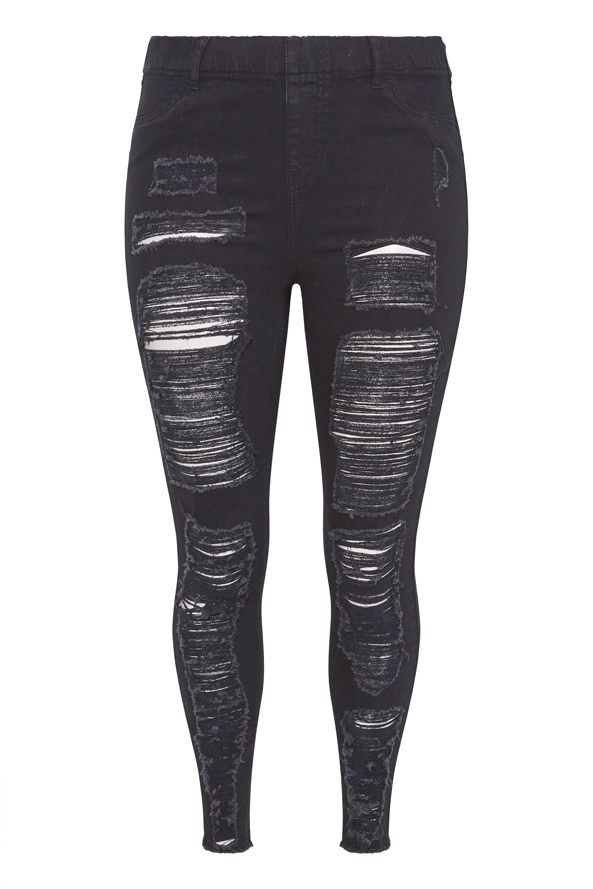 Meet your favourite new season denim. These Grace jeggings are made from a stretch fabric and feature a frayed ripped design with a high elasticated waistband to fit and flatter your curves. Complete in a pull-on style, partner with a shirt and heels for a chic weekend look.