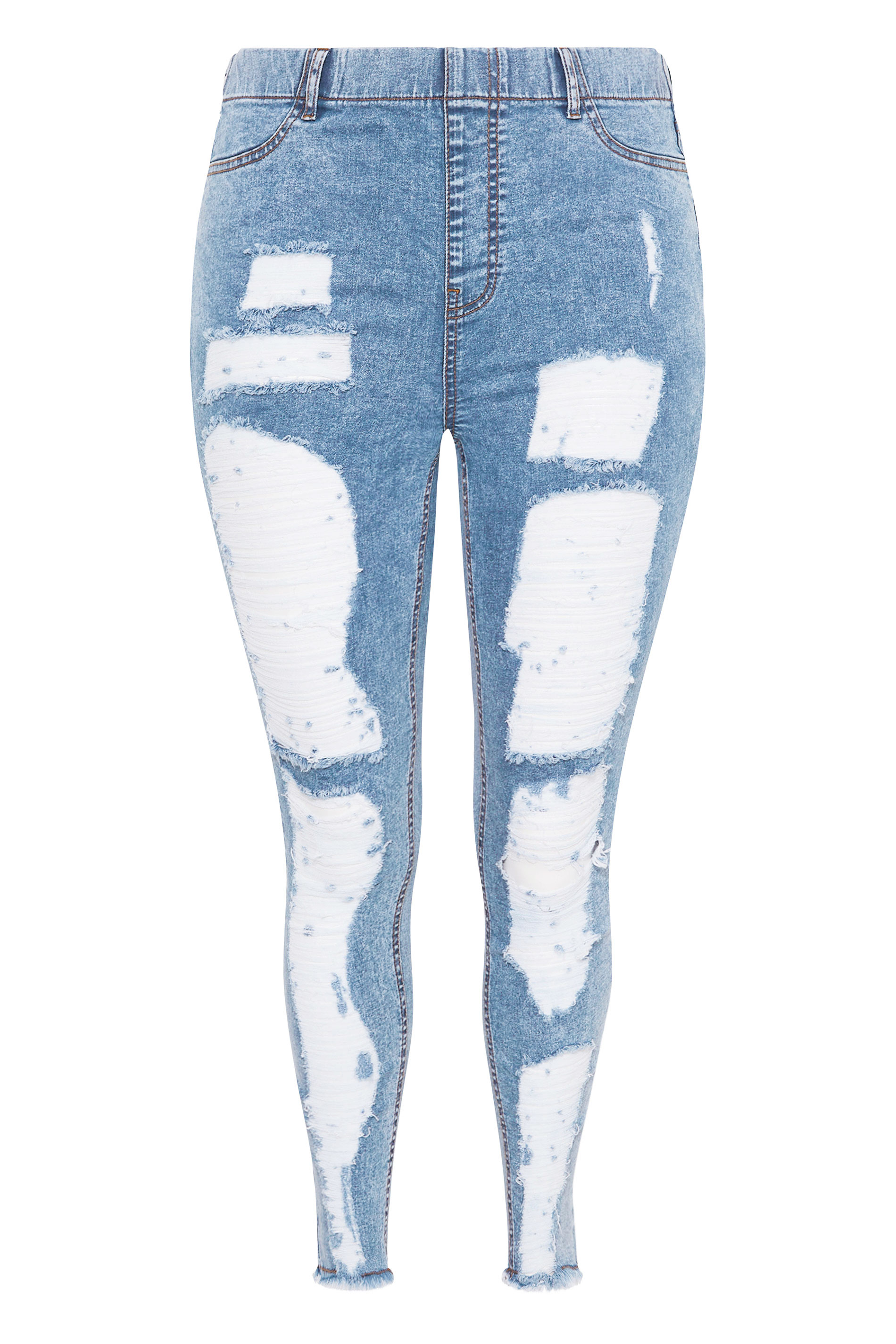 YOURS Curve Washed Blue Frayed Ripped Stretch GRACE Jeggings 255897