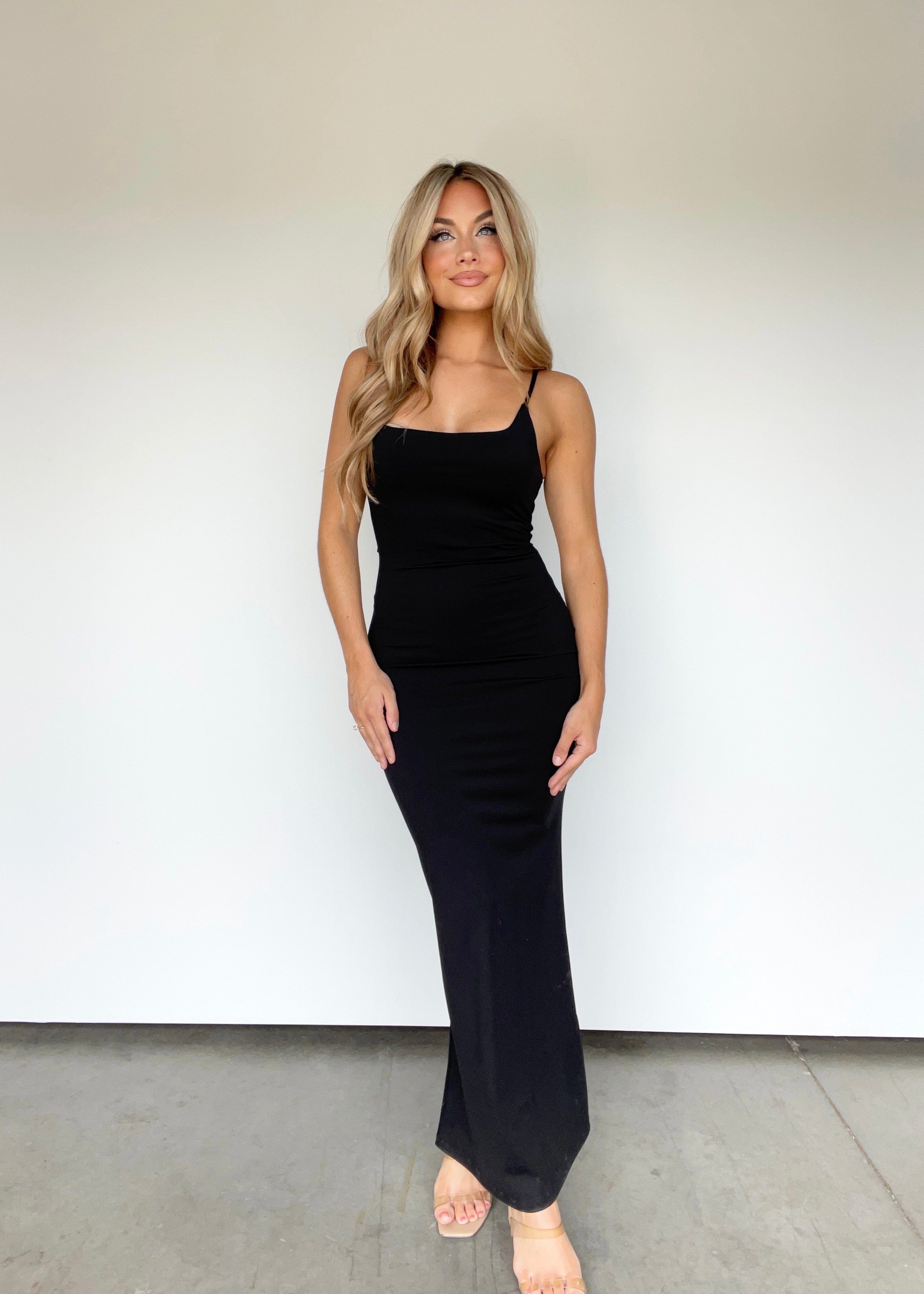 The Defined Maxi Dress is a staple in any sophisticated wardrobe. Crafted in a buttery-soft fabric that stretches to hug your curves, it features a flattering square neckline and thin adjustable straps that keep you comfortable and elegant for any occasion. Its versatile and fashionable bodycon fit with a snatched waistline and maxi length makes it perfect for lounging, dinner, and drinks.