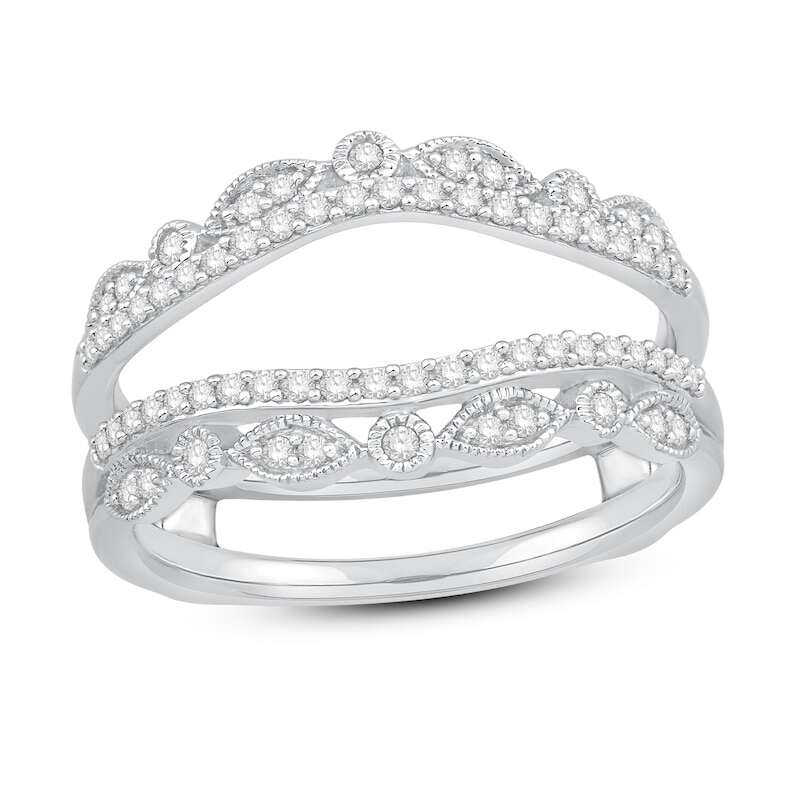 This regal enhancer ring is beautifully crafted with radiant round-cut diamonds and ready to hold the diamond solitaire ring of her dreams (sold separately). Styled in iconic 14K white gold, the ring has a total diamond weight of 1/3 carat and is featured in our Now & Forever? bridal collection.