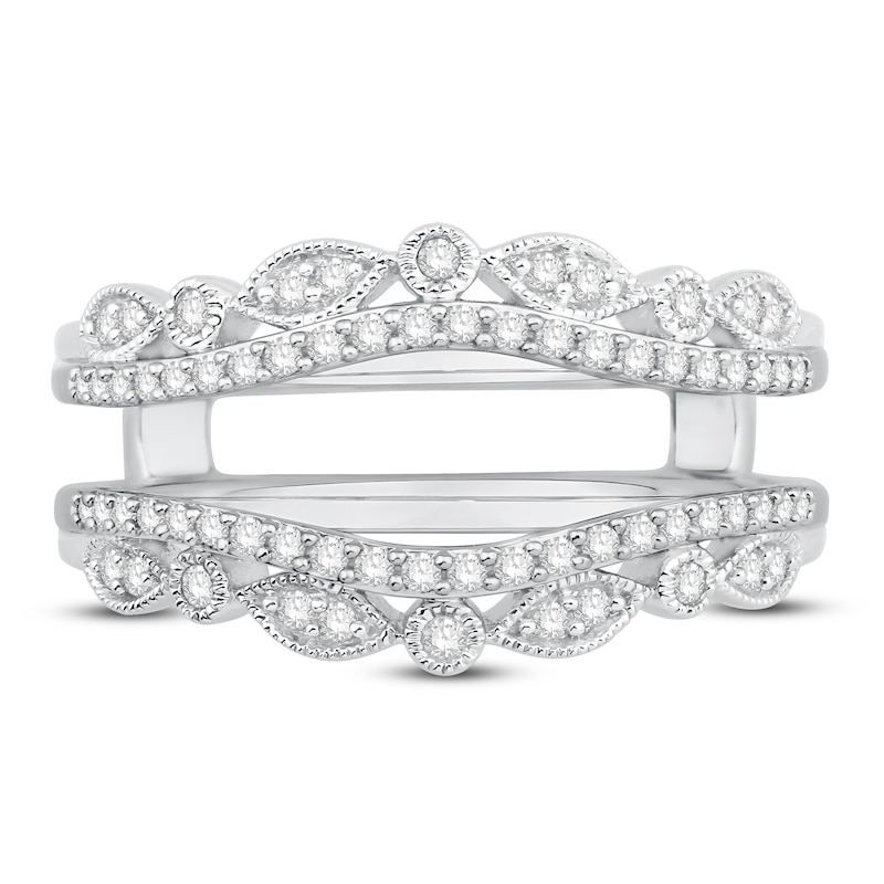 This regal enhancer ring is beautifully crafted with radiant round-cut diamonds and ready to hold the diamond solitaire ring of her dreams (sold separately). Styled in iconic 14K white gold, the ring has a total diamond weight of 1/3 carat and is featured in our Now & Forever? bridal collection.