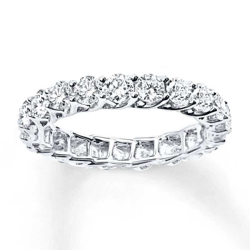 Sparkling round diamonds encircle the band of this stunning eternity ring, suggesting a love that never ends. Crafted of 14K white gold, the ring has a total diamond weight of 2 carats.