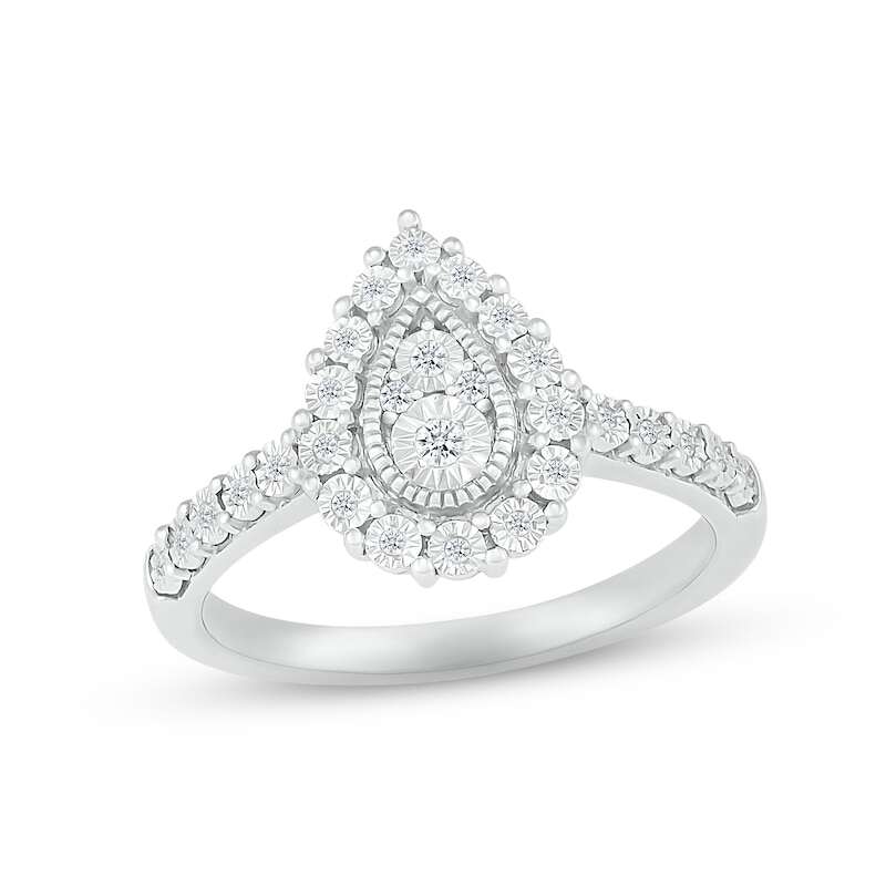 Diamond Pear Halo Promise Ring 1/10 ct tw Round-cut Sterling Silver 154918
