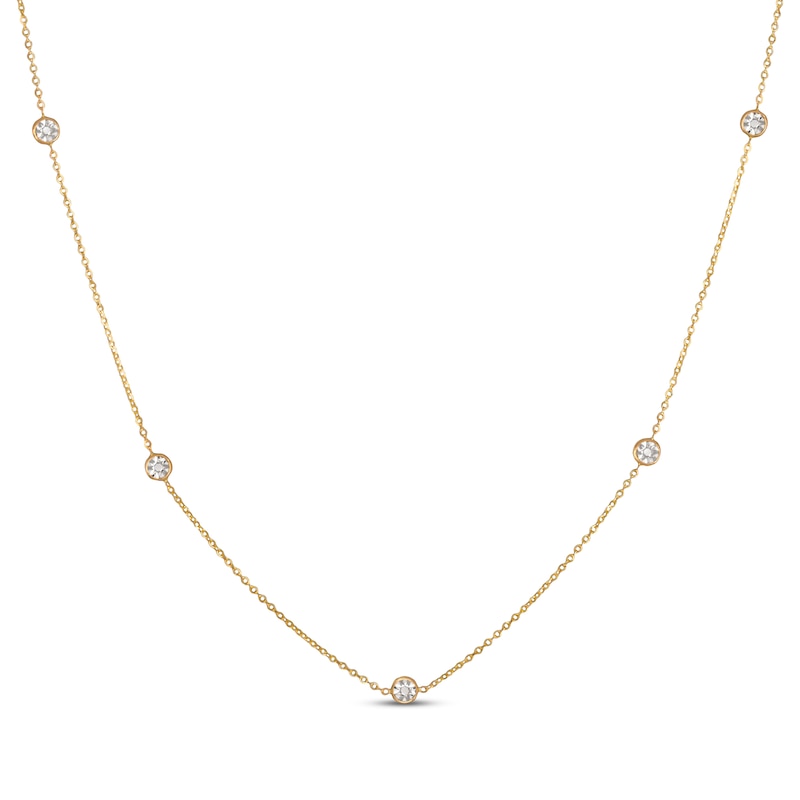 Dazzling diamond-cut discs are stationed along this stylish necklace, which is crafted in 10K yellow gold with white rhodium contrast. The cable chain measures 20 inches and secures with a lobster clasp. Made in Italy.