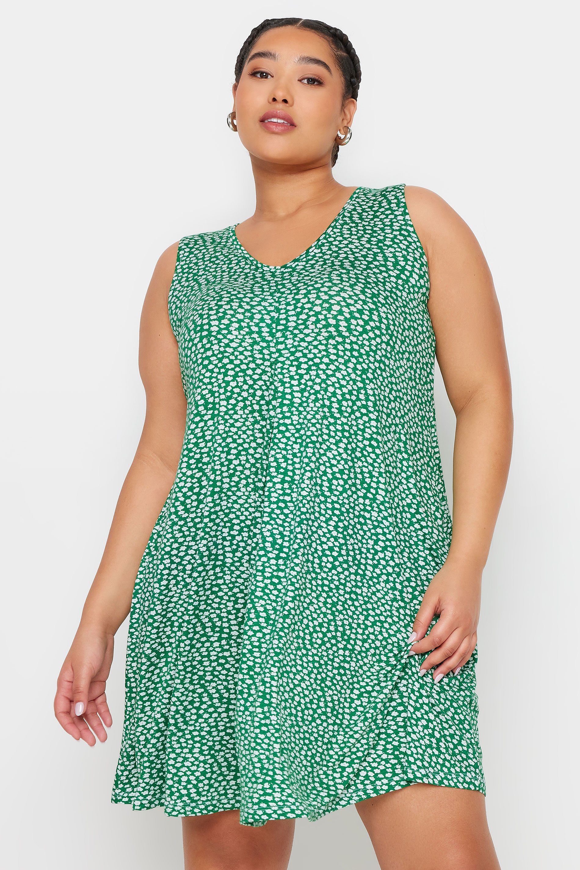 Welcome a new summer staple into your collection with this must-have mini dress. Made from a comfortable jersey fabric, it features a ditsy floral print with a sleeveless design and v-neckline. Team with trainers for an effortless look that you can rely on for ease and comfort.