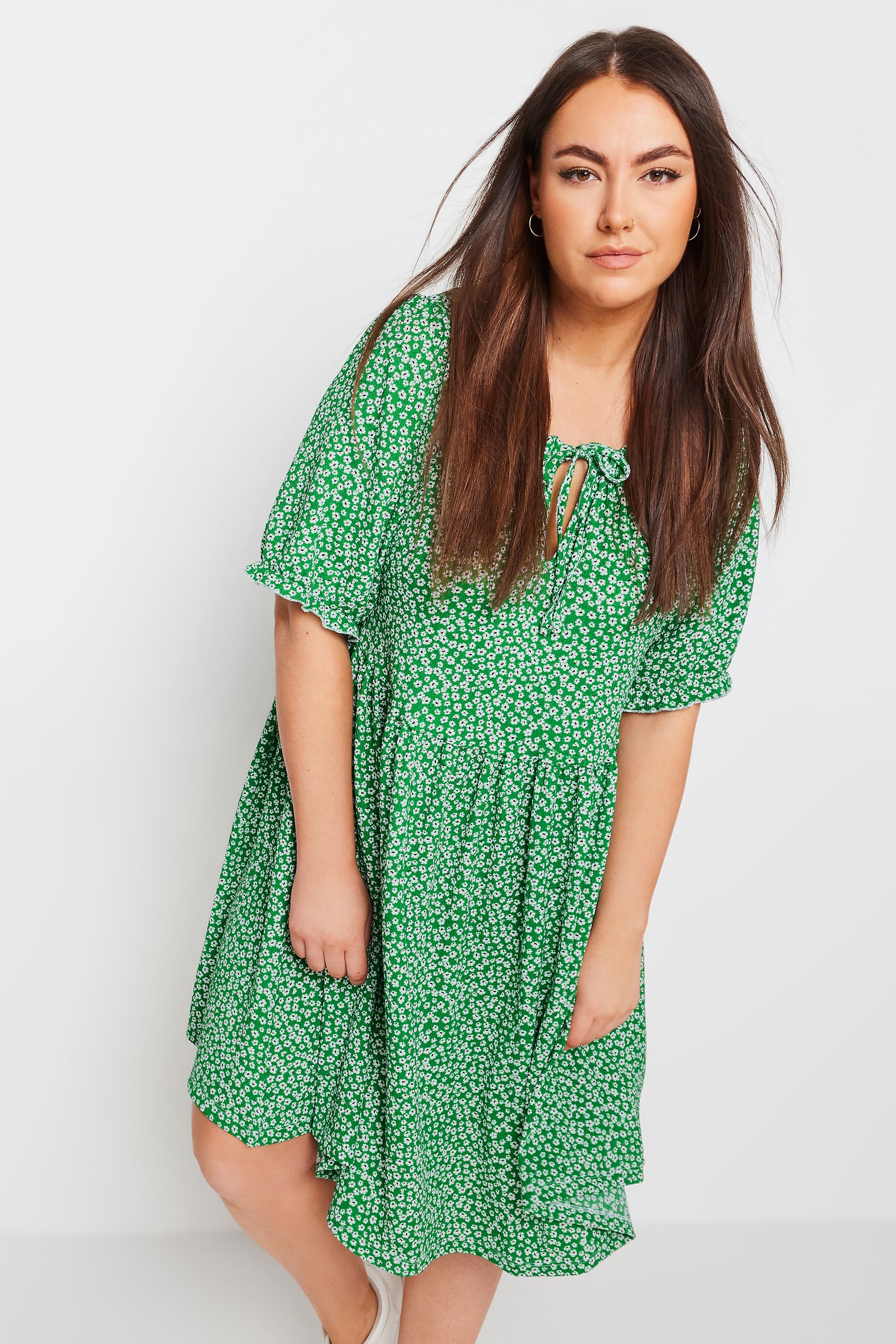 Introduce pretty prints to your spring season wardrobe with this new-in smock dress! Made from a comfortable woven fabric, this dress features a ditsy floral print, a smock style, a front tie detail, short sleeves and textured design. Style with sandals and sunglasses for a warm-weather look you'll love.