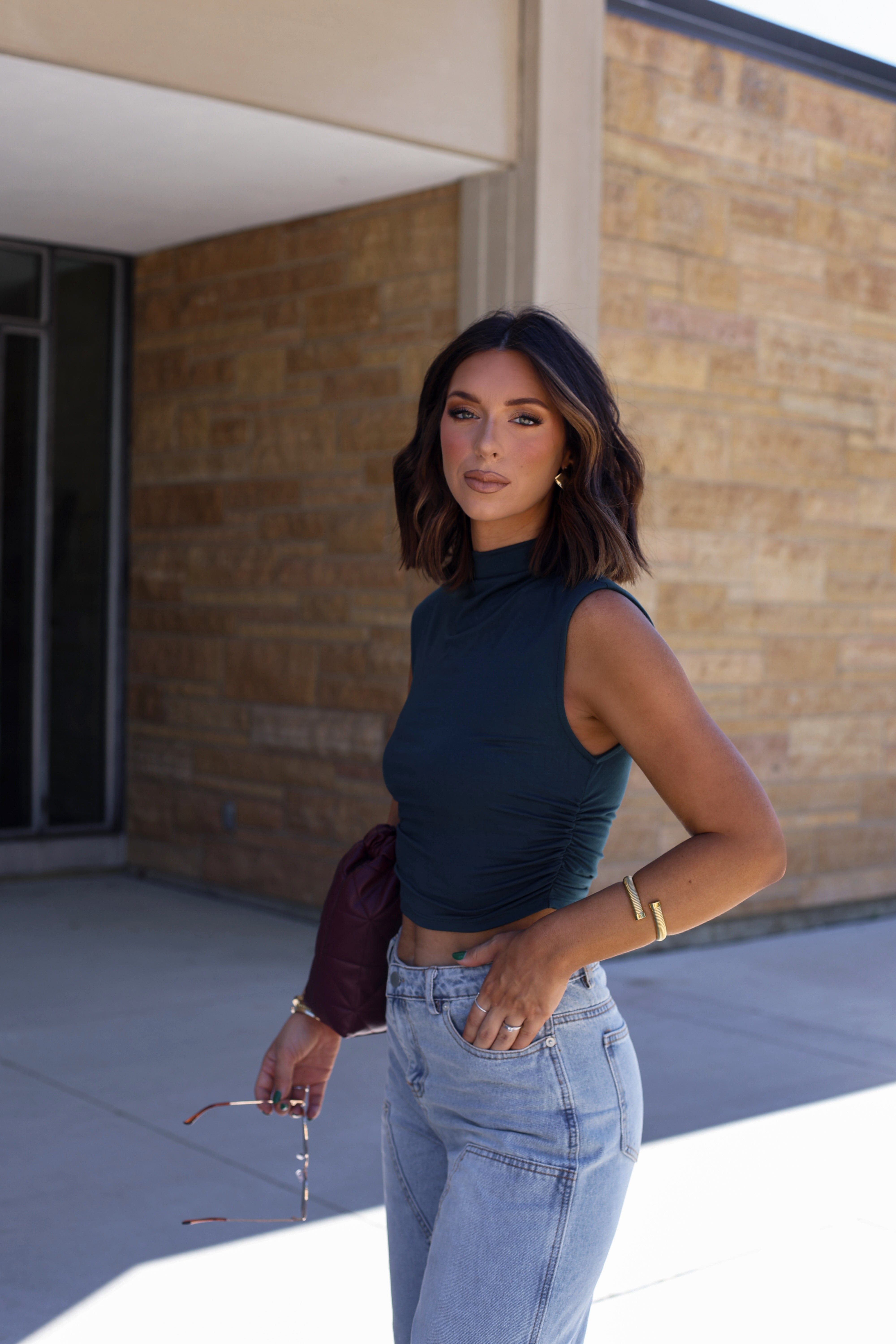 Add a touch of elegance to your wardrobe with our Dress It Up Top. The mock neck and ruched sides elevate the comfort and style of this soft, stretchy knit top. It's perfect for any occasion - from dinner and drinks to shopping - and its versatile cropped design makes it a must-have for the spring and summer season.